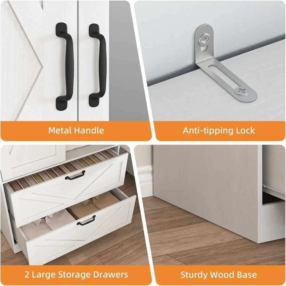 - 【STURDY CONSTRUCTION】- Built from high-quality MDF, this wooden wardrobe cabinet is designed for durability and daily use. Whether your wardrobe collection is small or large, this armoire delivers reliable, long-lasting storage.