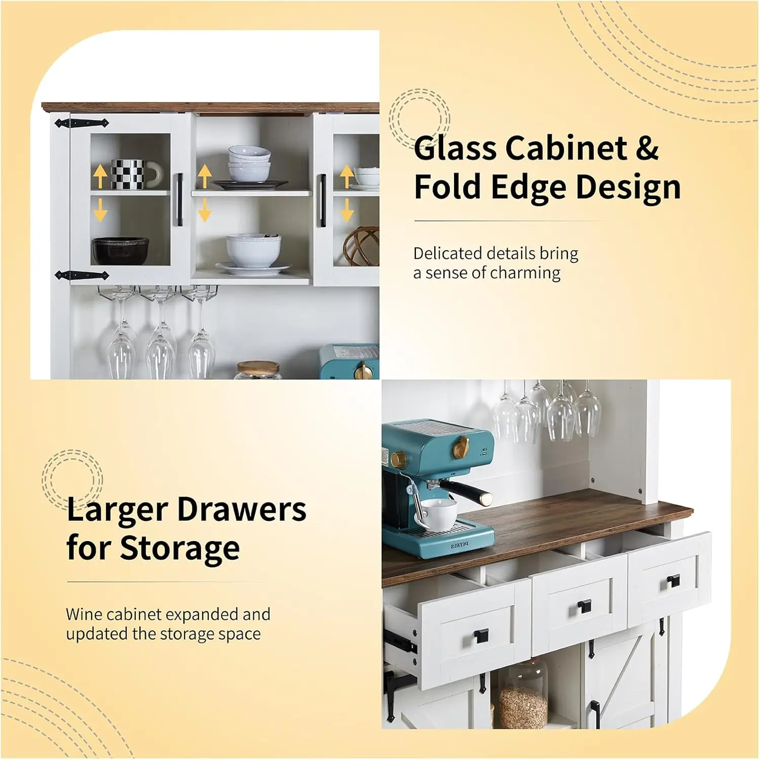- [Sliding Barn Doors] The farmhouse-style bar cabinet has smooth sliding barn doors and adjustable boards that allow liquids, wine glasses, and cups flexibly stored and easily accessed.