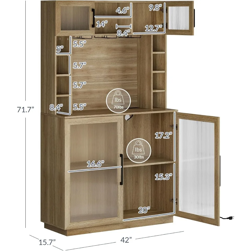 72 inch rural wine cabinet with power socket, high slot buffet cabinet, kitchen with storage, pantry cabinet, wine rack