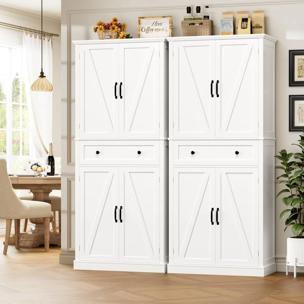 72” MDF Pantry Cabinet, Kitchen with 4 Doors, Drawer Shelves, Farmhouse Storage Cabinet Kitchen Hutch Tall for Dining Room