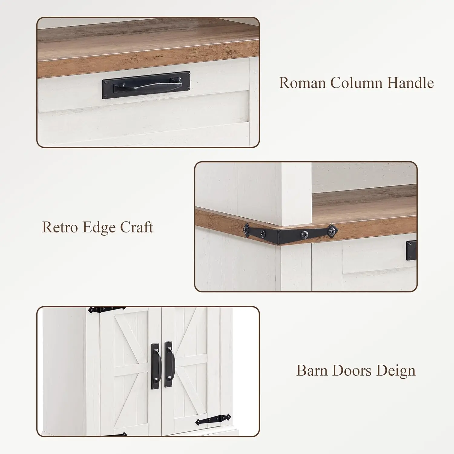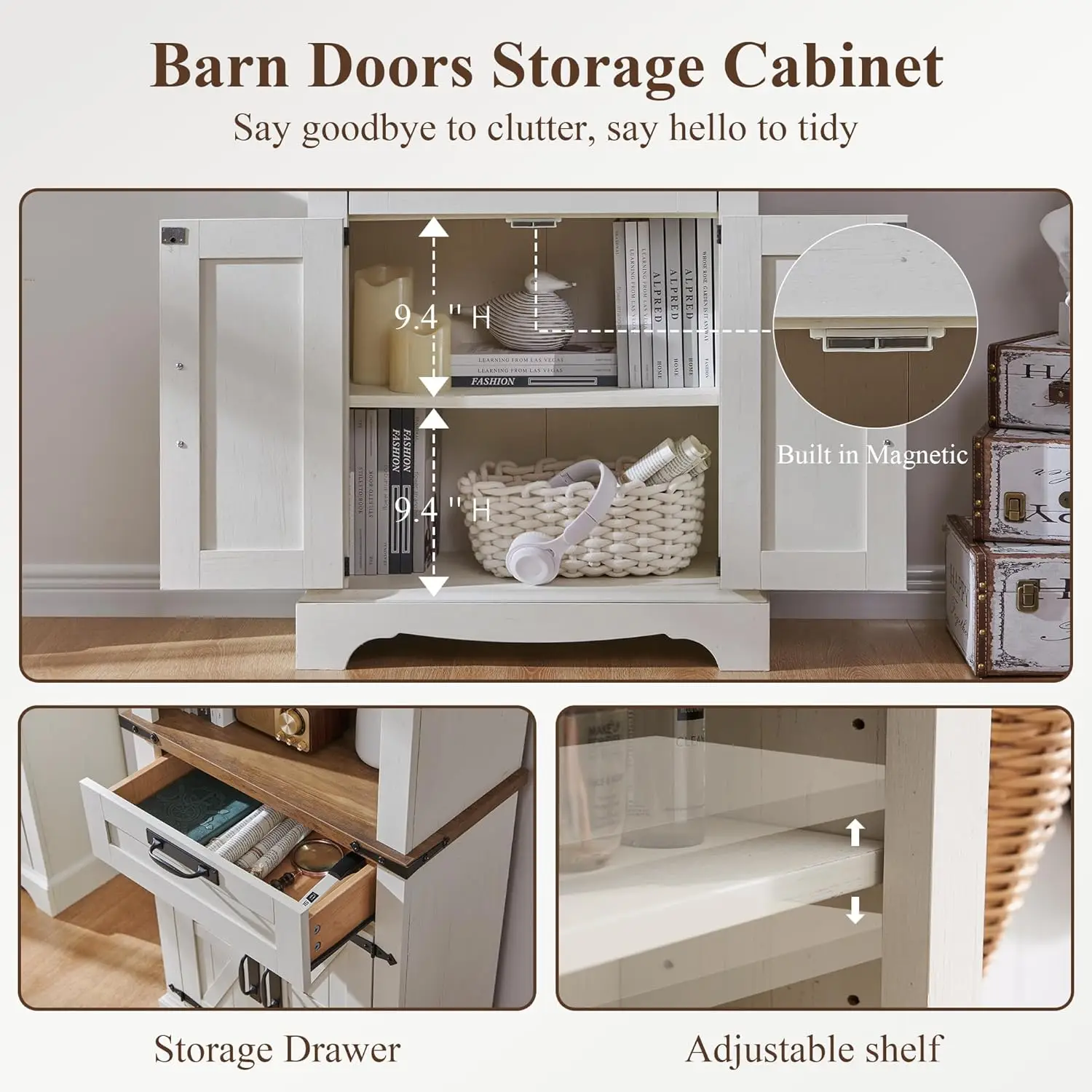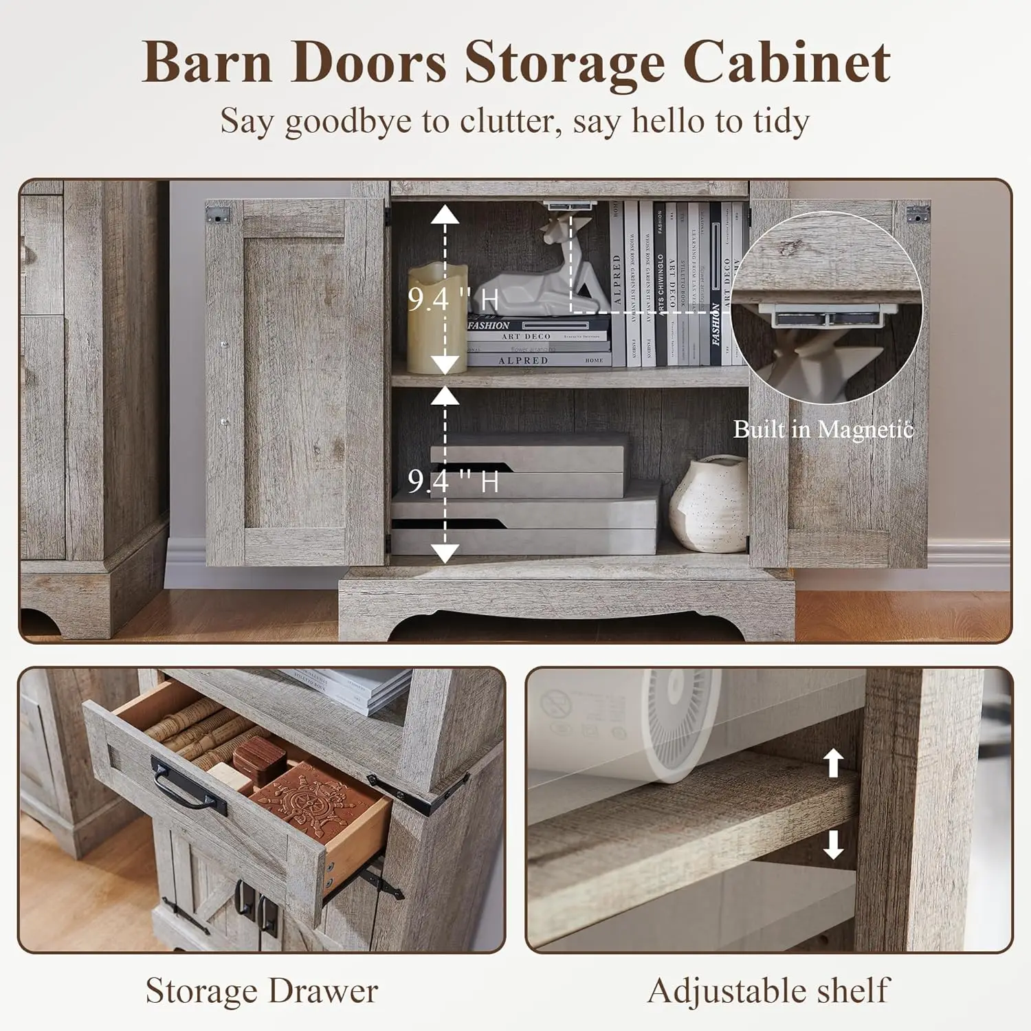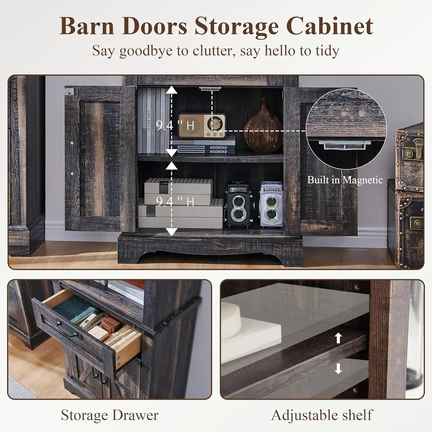 72″ Tall Farmhouse Bookcase with Adjustable Shelves and Barn Door, 4 Tier Office Wood Bookshelf with Drawer for Office Library