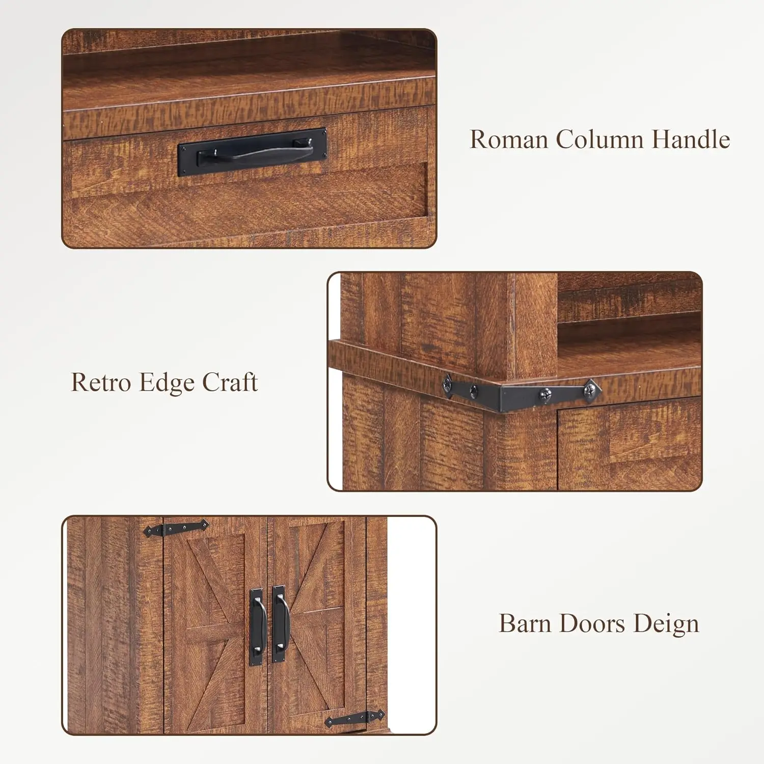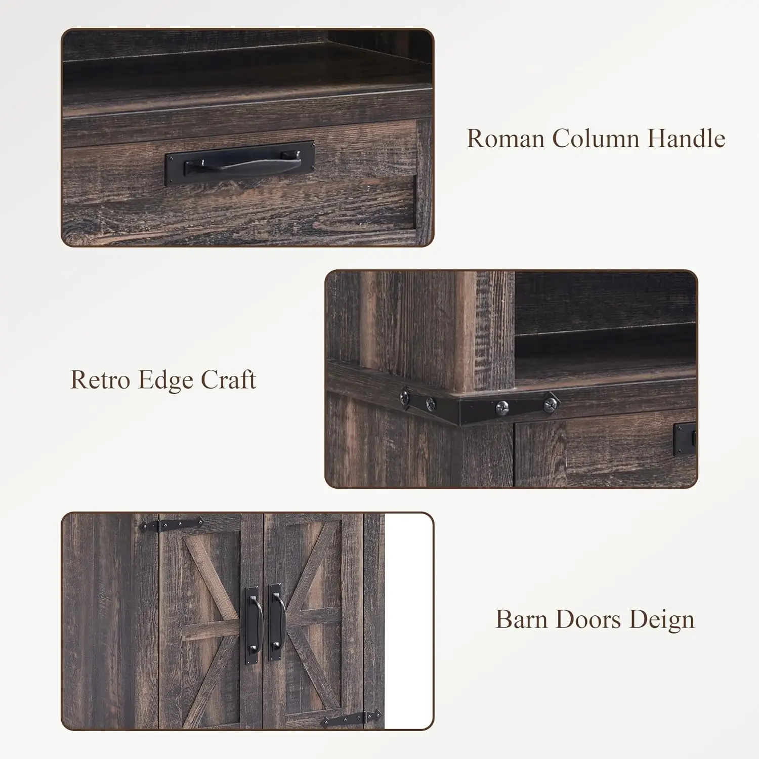 - 4-Tier Open Shelf Design : Each of the 3 shelves is free to move, allowing you to adjust the height to suit different item. adjustable shelf inside the hutch as well which can offer customized storage space.