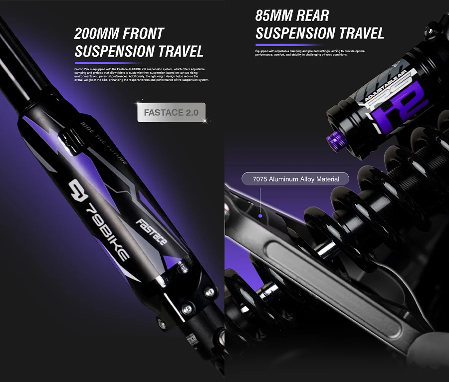 Falcon Pro is equipped with the Fastace ALX13RC 2.0 suspension system, which offers adjustable damping and preload that allow riders to customize their suspension based on various riding environments and personal preferences.