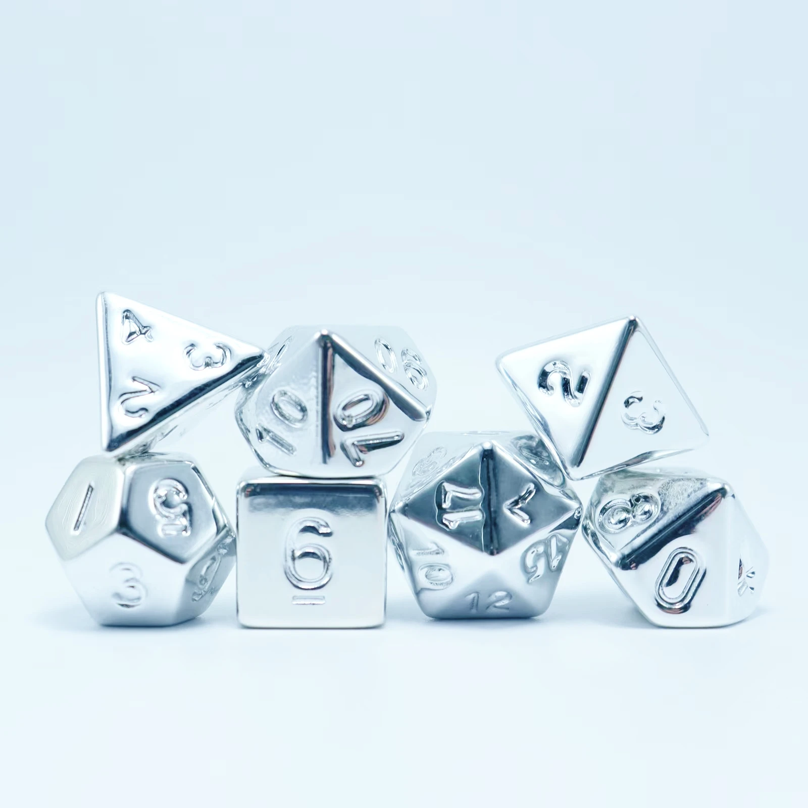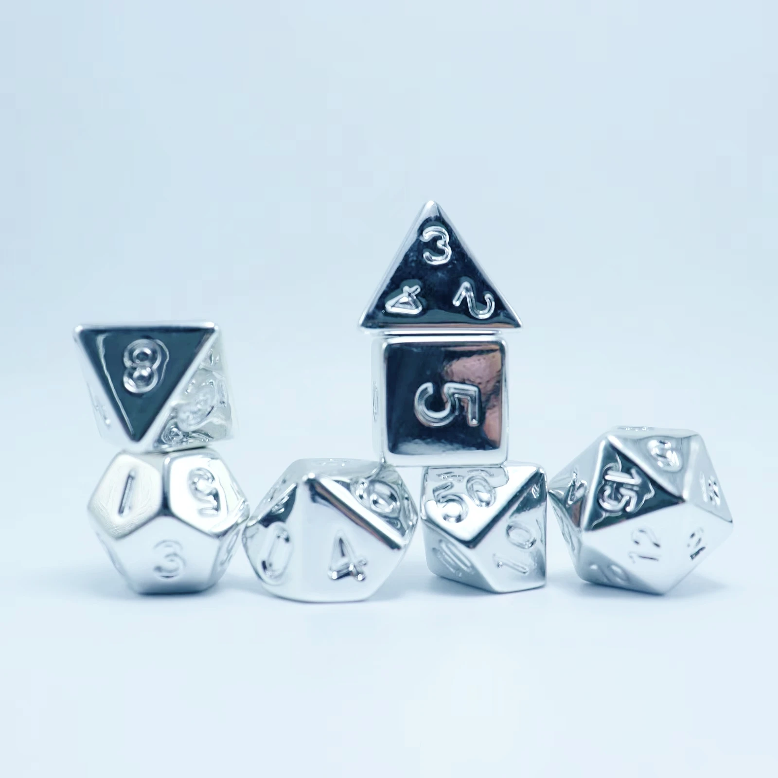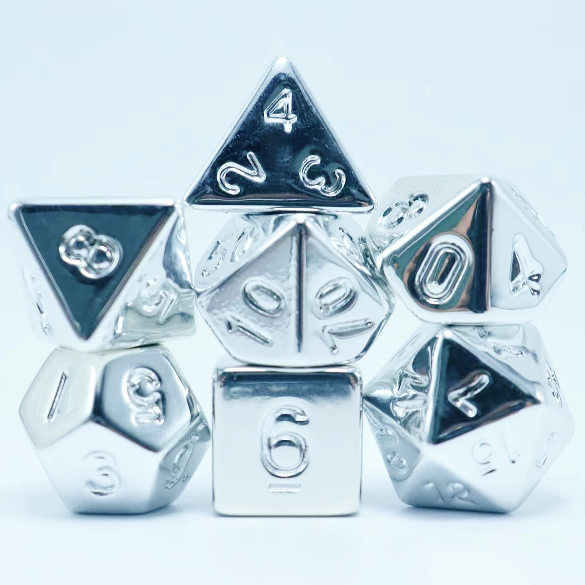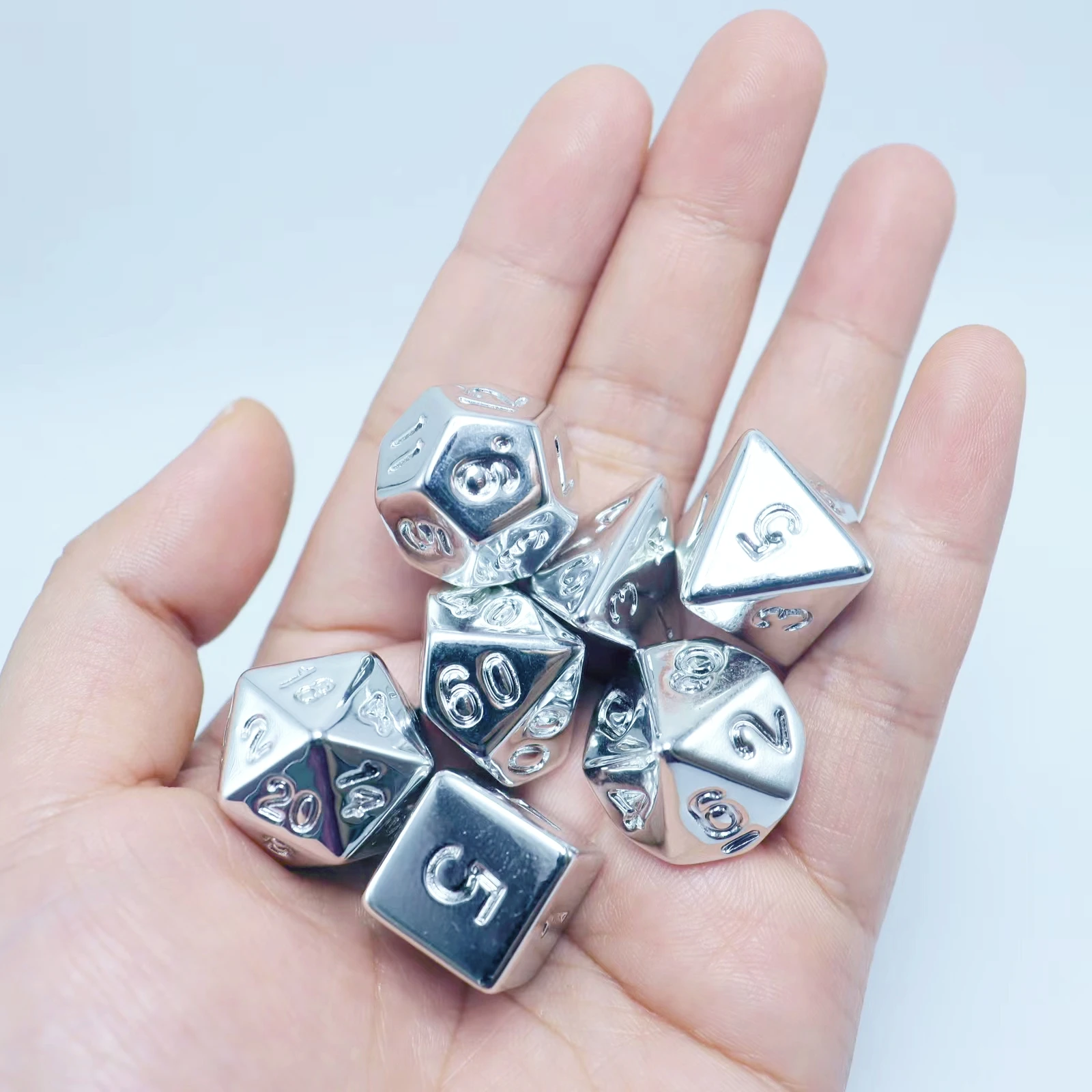 7pcs plated silver set, the overall plating is very cool, game accessories dice, polyhedral dice, board game supplies, leisure e