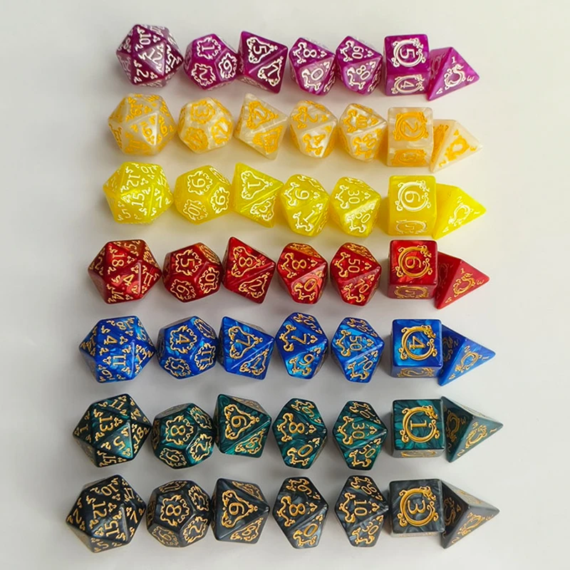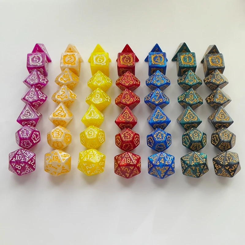 7pcs/set Hollowed Out Pattern Digital Dice Set for TRPG RPG COC Cthulhu D20 D12 D10 D8 D6 D4 Table Game Board Game Dnd Dice Set