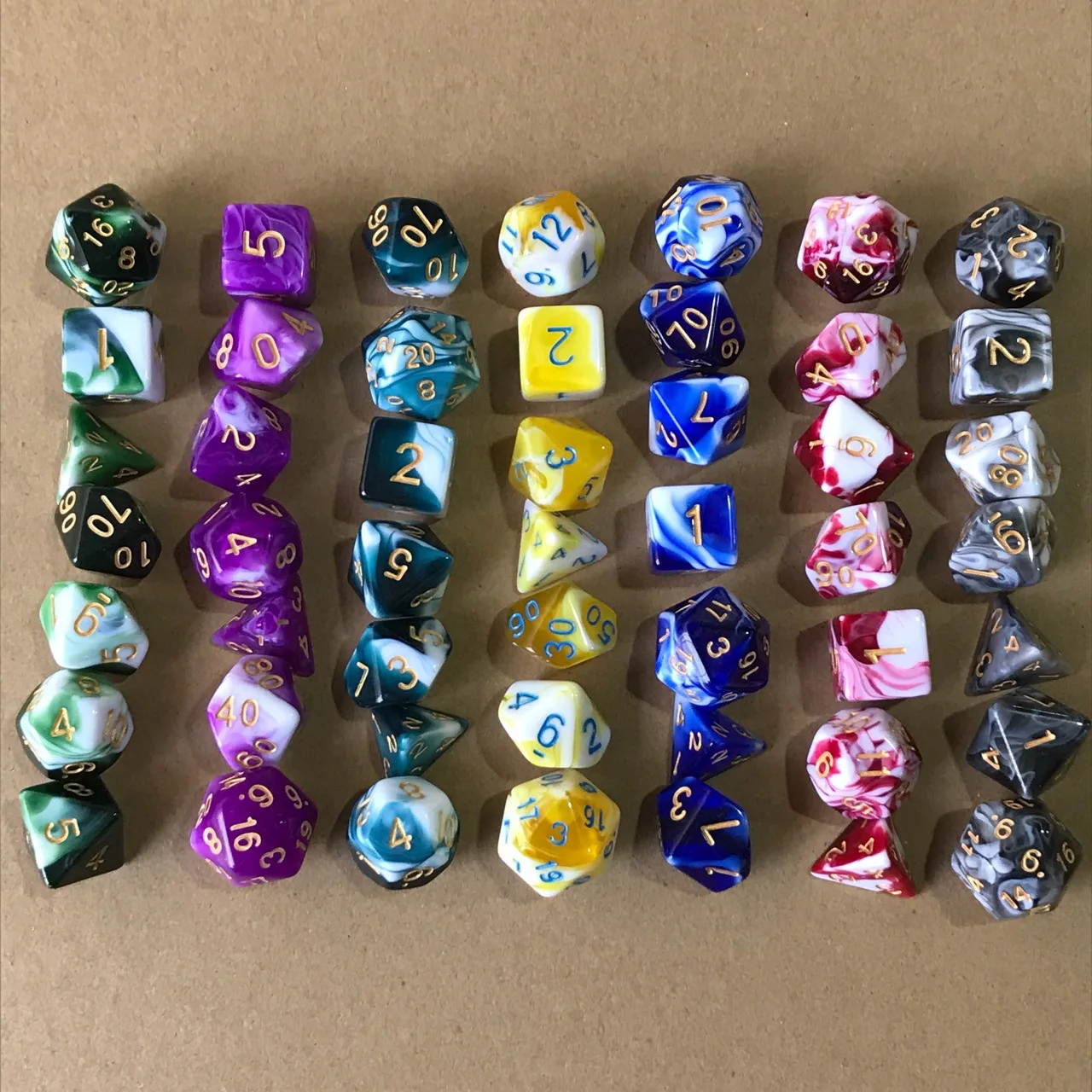 7Pcs/set Resin Multifaceted Dice D&d D4 D6 D8 D10 D12 D20 Polyhedral for TRPG Games Board Party Family Game Dice