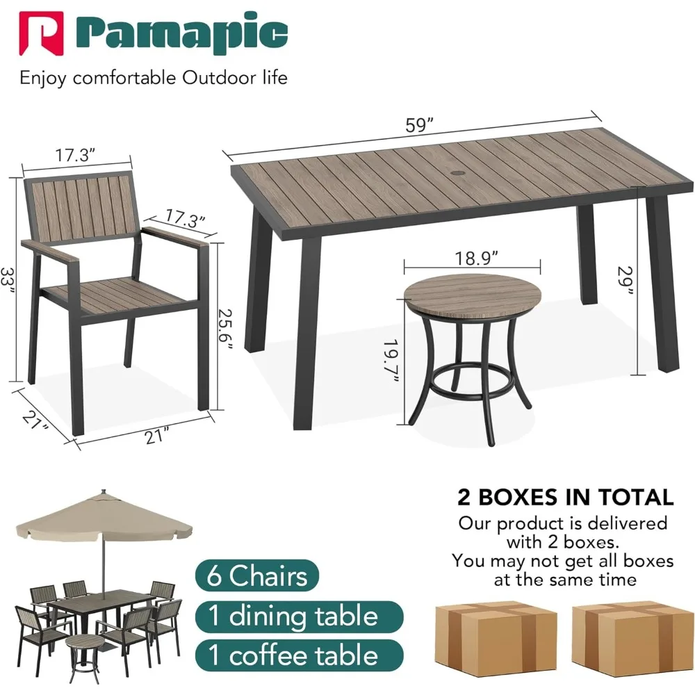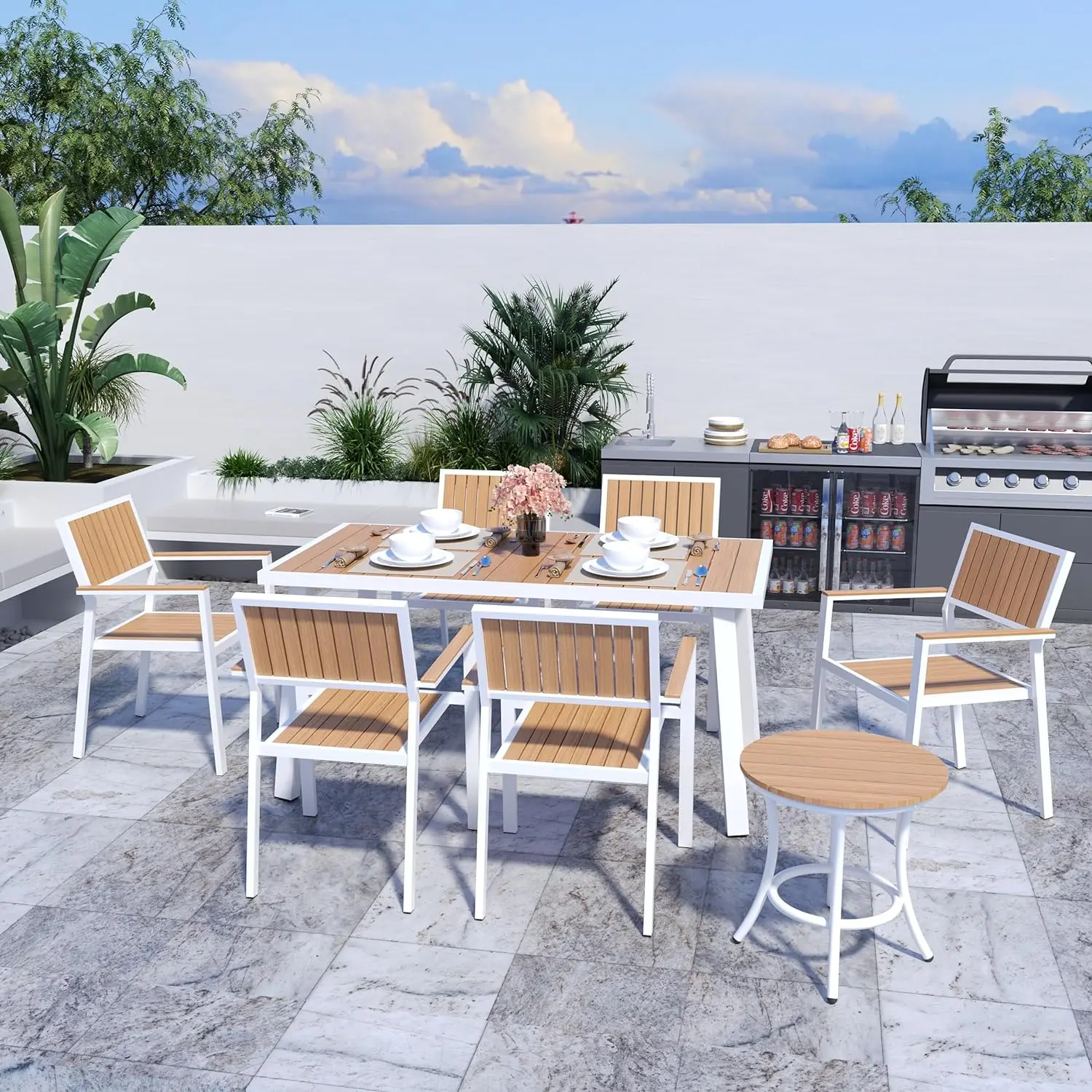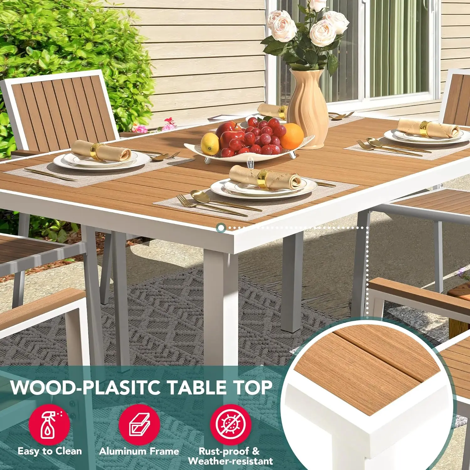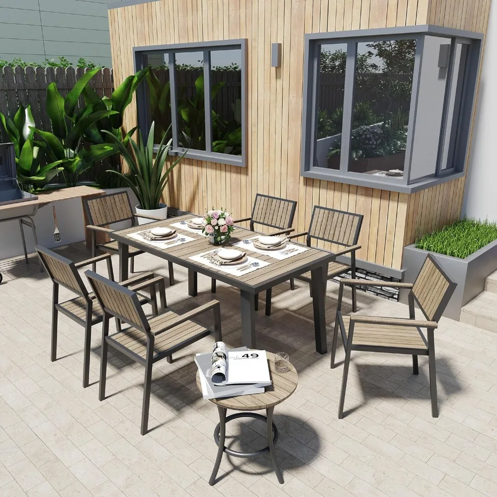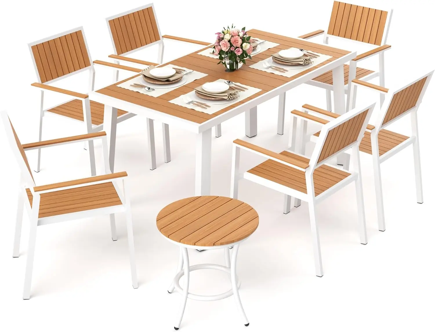 8-Piece Patio Dining Set,Outdoor Aluminum Furniture Set with Plastic-Wood Table,Outdoor Furniture Set with 6 Outdoor Furniture