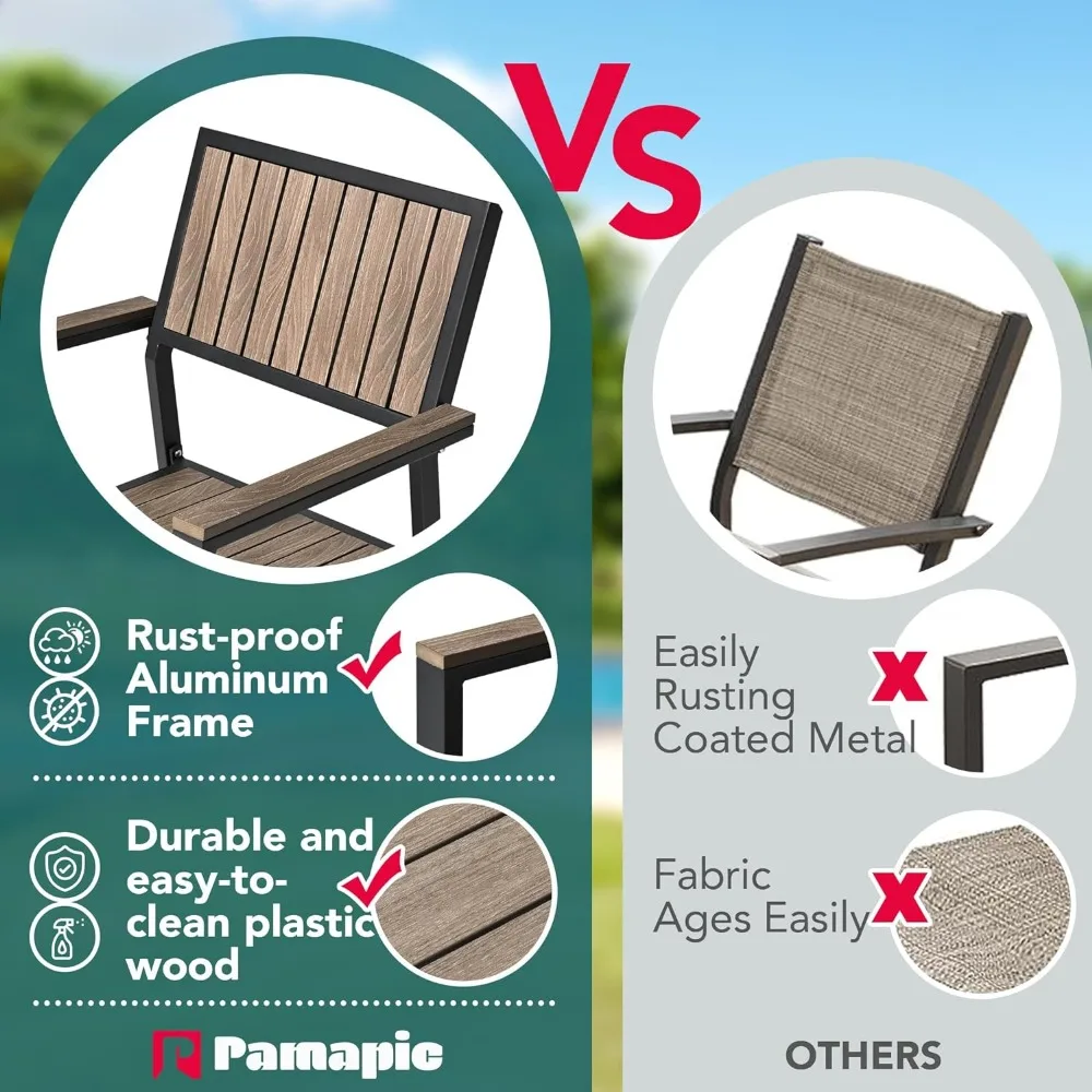 • 【Wood Design】The patio dining set is crafted from a unique wood material that not only replicates the grain and texture of real wood but also offers enhanced weight-bearing capabilities compared to solid wood.Additionally with a special design, making it more suitable for outdoor use.