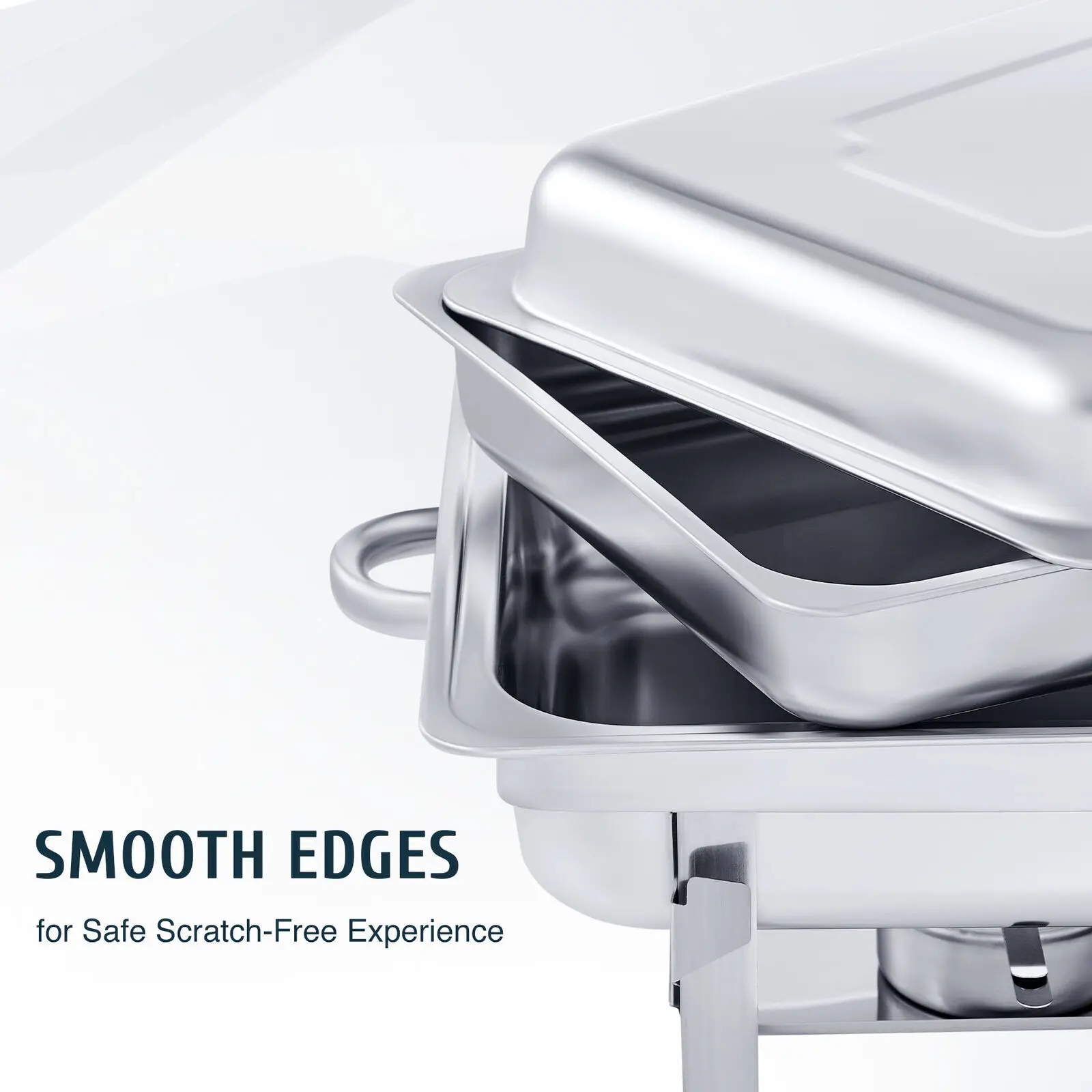 -FOLDABLE LEGS & SPACE SAVING: The legs of the chafer can be folded for convenient placement, storage, and transport. Stackable design allows multiple chafing dishes to easily stacked and packed, allows you to save up to 50% of the space.