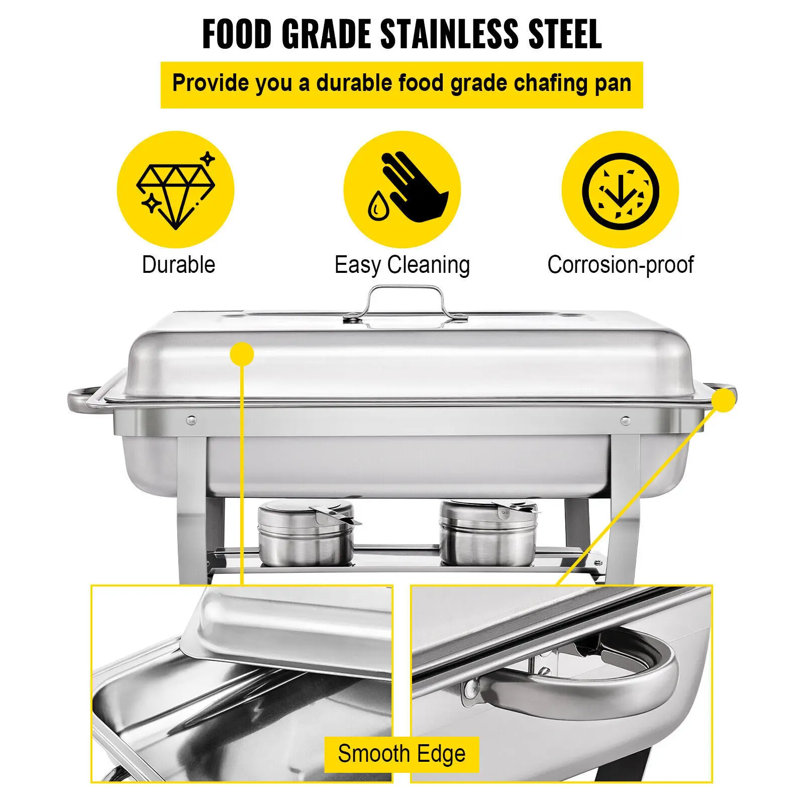 This 8 quart stainless steel rectangular dish is ideal for buffets, hotel breakfast areas, brunches, catering, parties, wedding banquets and self-service environments. Made of stainless steel and featured a uniquely designed and solid frame, and it is also durable and easy to clean. Always keeping your food warm, so you can enjoy a delicious meal well with it!