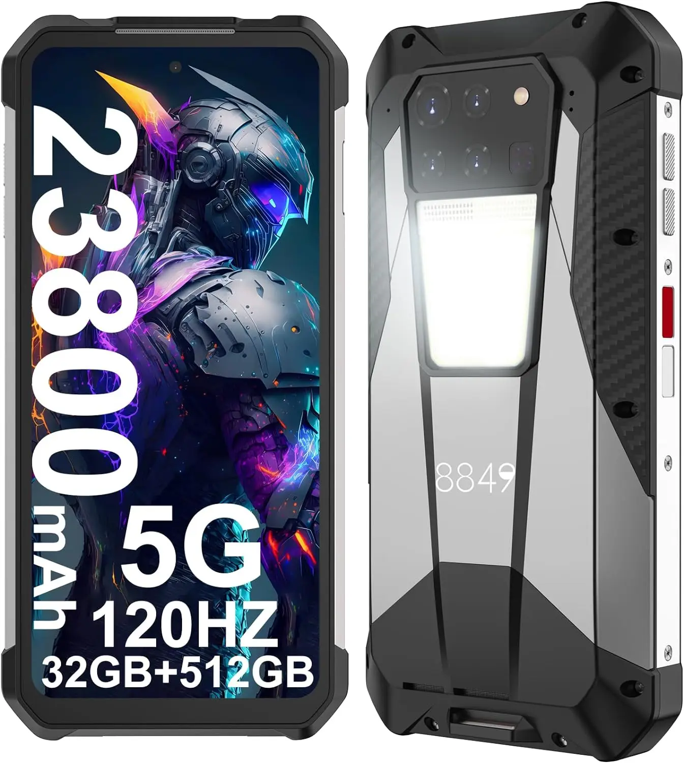 8849 Tank 3 Rugged Smartphone, 23800mAh 5G Outdoor Rugged Cell Phone Unlocked,Android 13 32GB RAM+512GB ROM,Denmisty 8200 CPU
