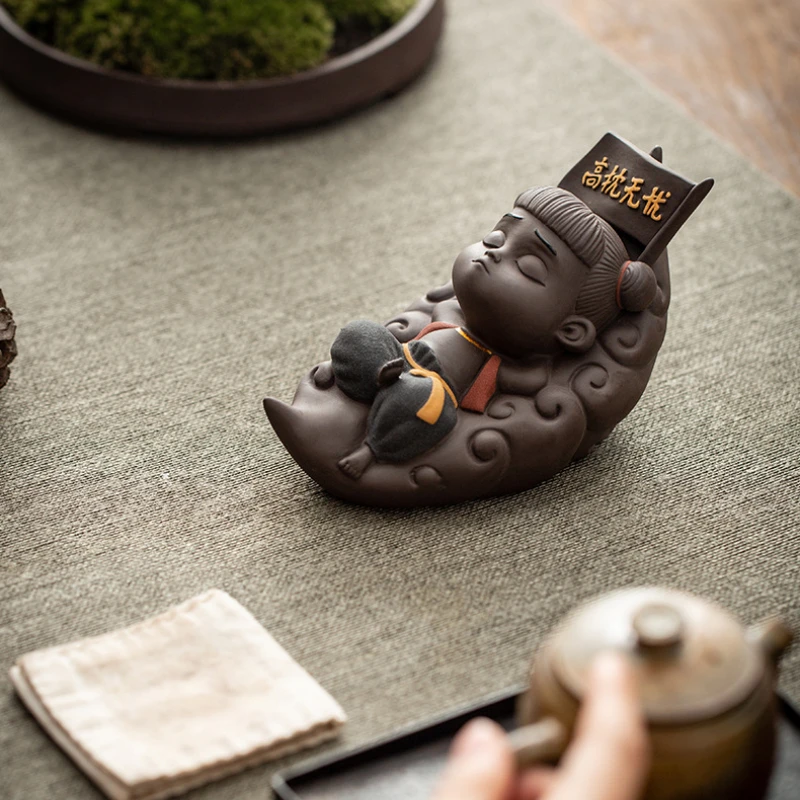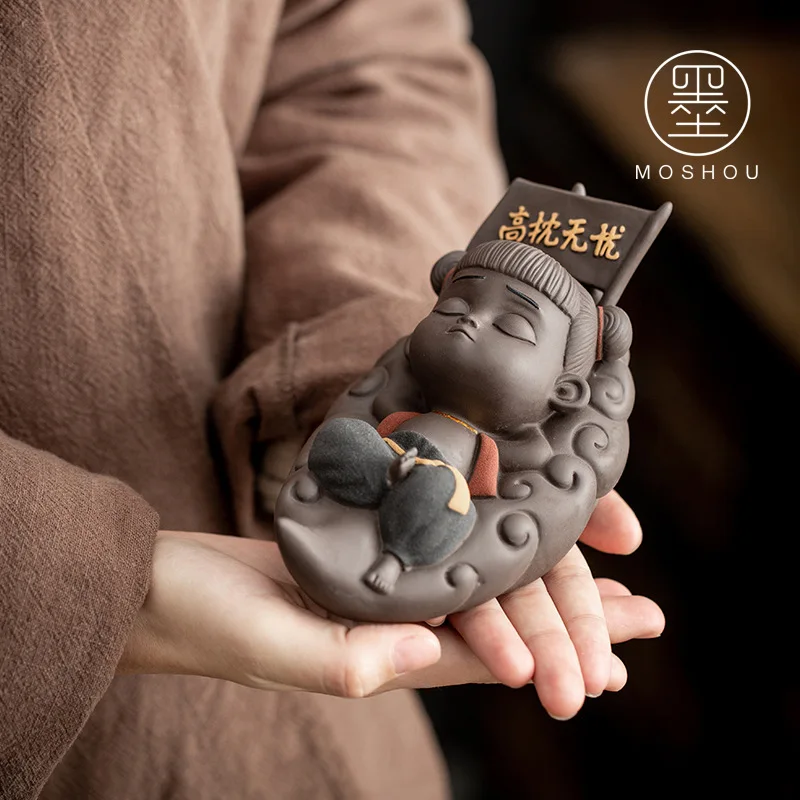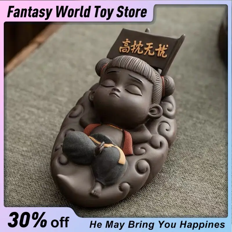 8cm Nezha:Birth of The Demon Child Purple Clay Tea Pet Action Figure Creative Model Ornament Collection Desktop Display Gift Toy