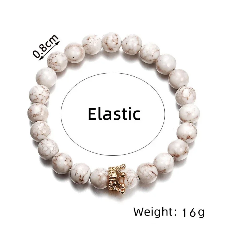 8MM White Pine Volcanic Stone Bracelet Elastic Thread Adjusted Bead New Volcanic Stone Crown Bracelet For Women Men Jewelry Gift