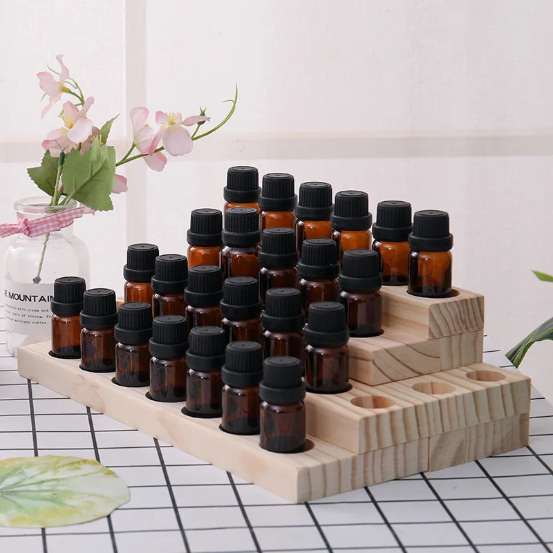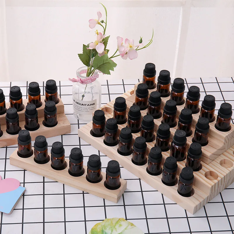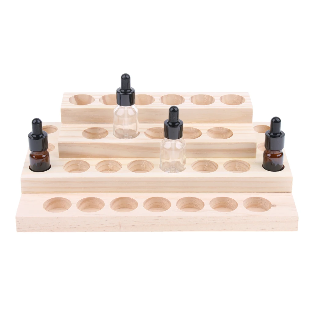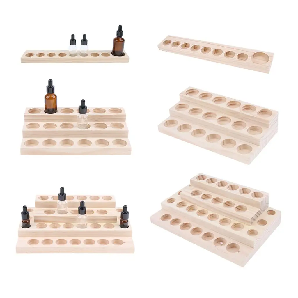 9/18/30Slots Wooden Essential Oil Storage Display Rack Wooden Organizer Holder Multifunctional Oil Bottle Collection For Salon