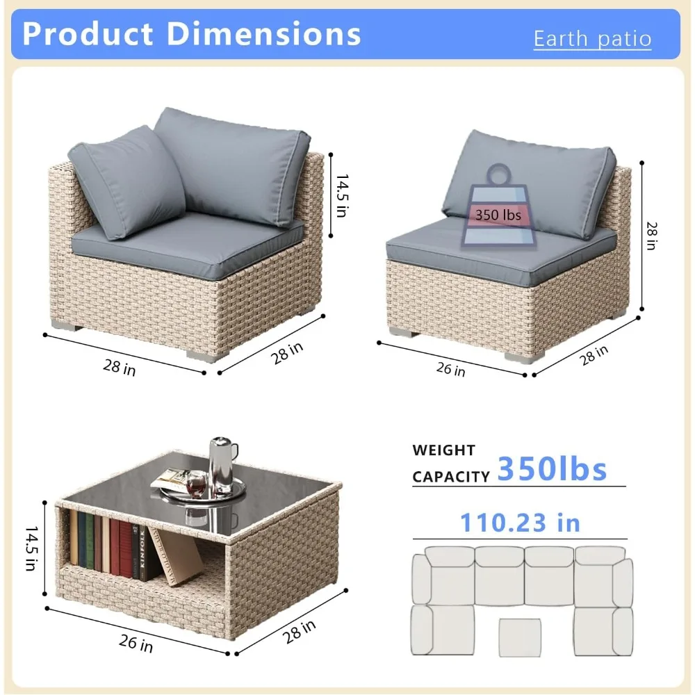 - Versatile Modular Design: Our outdoor sectional sofa features a modular design, allowing you to customize your patio set to fit any outdoor space. The flexibility of this outdoor furniture allows for various configurations, making it perfect for different seating needs and layouts.