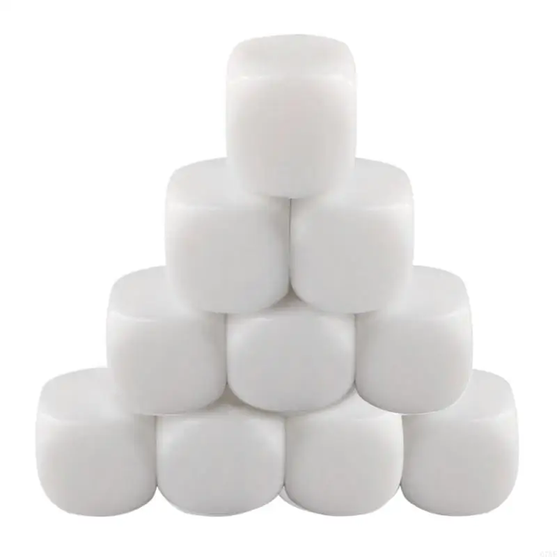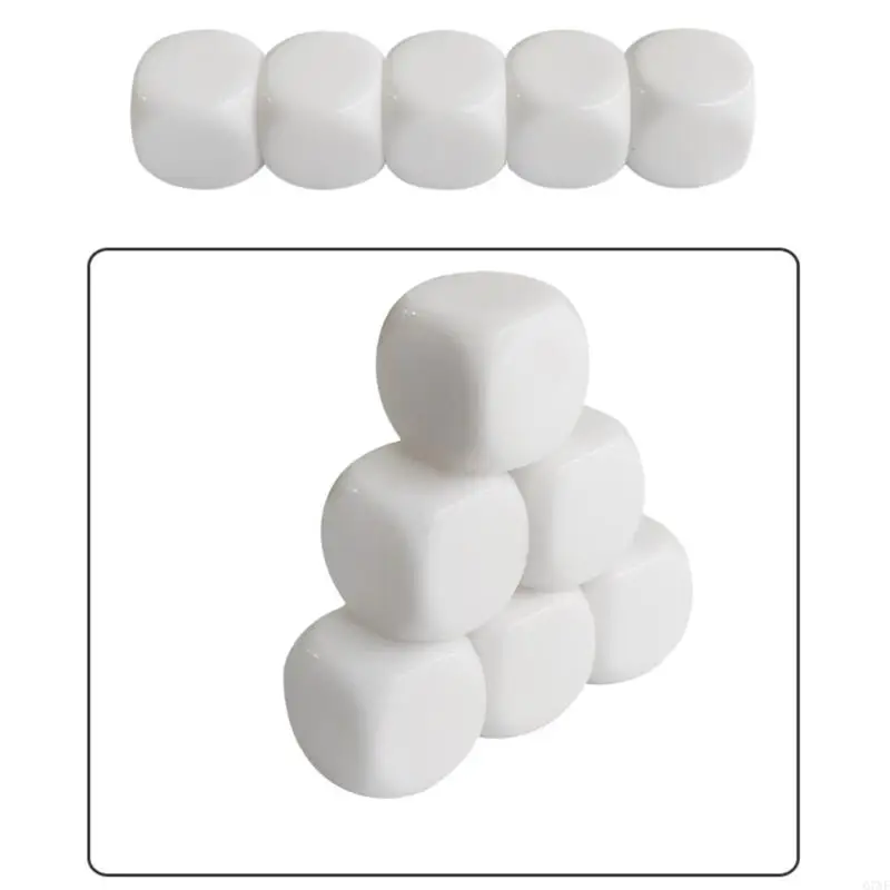920L 10Pcs Blank White Dices Cube Six Sided Dices with Round Corners 16MM Acrylic Dices for Classroom Board Game, DIY Sticker
