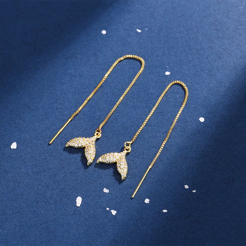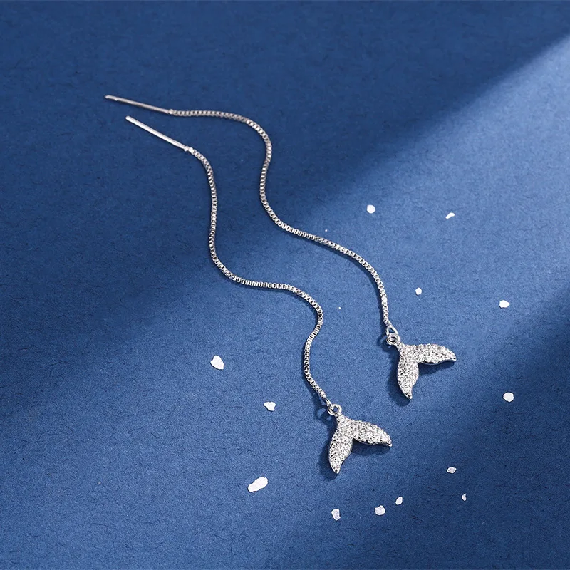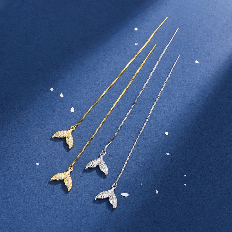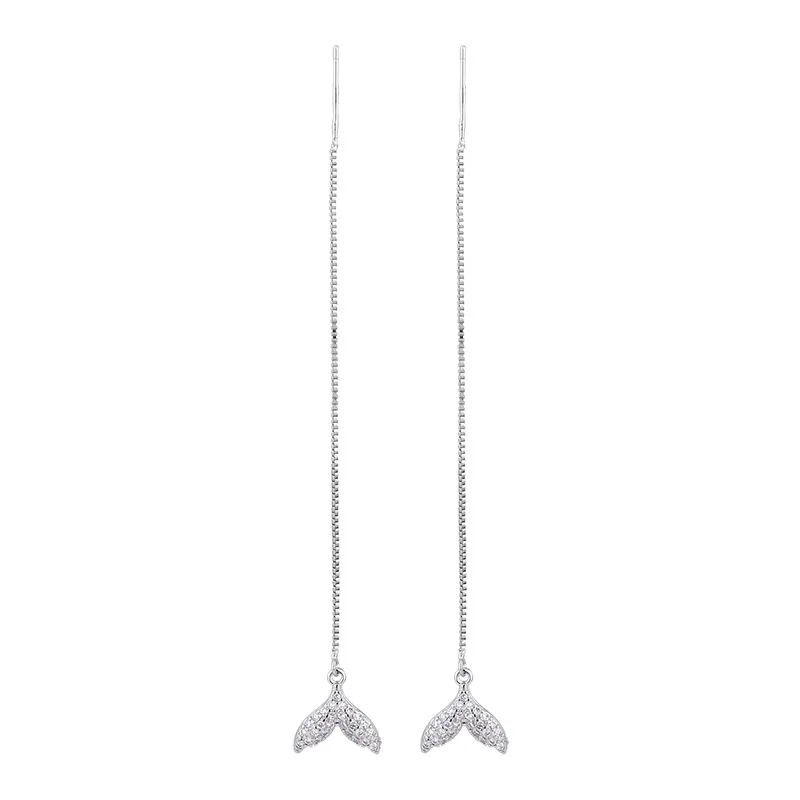 925 Silver Needle Tassel Chain Zircon Mermaid Tail Drop Earring For Women Hanging Party Jewelry Gifts eh1441