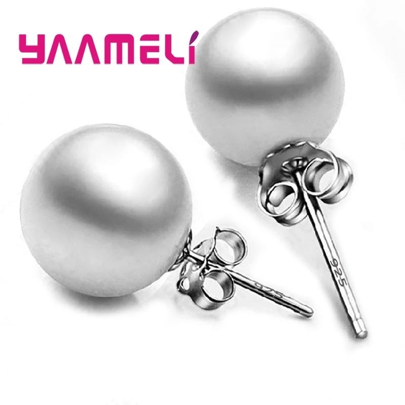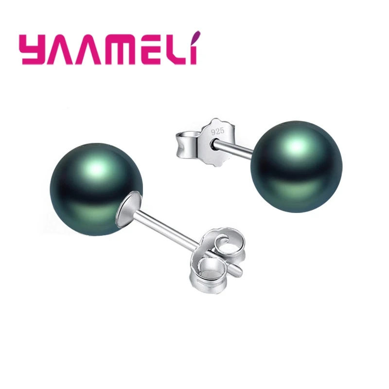 925 Sterling Silver Color Jewelry Pendientes 8mm Black Pink White Pearl Stud Earrings for Women Girl Birthday Wedding Engagement