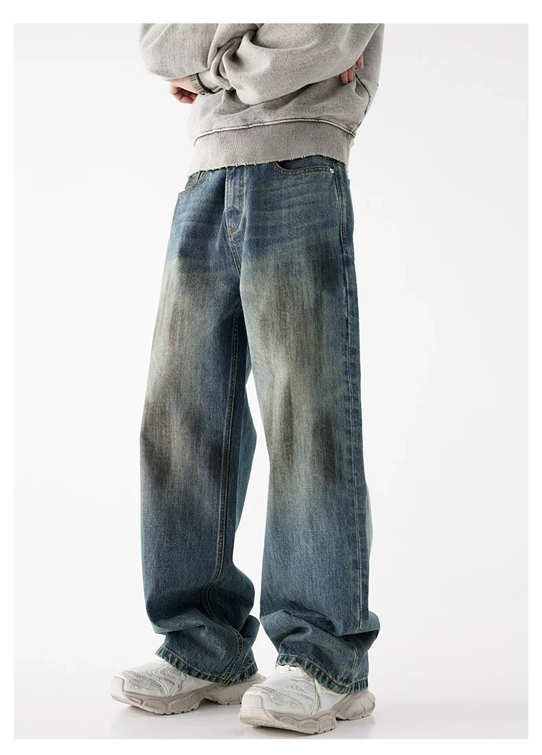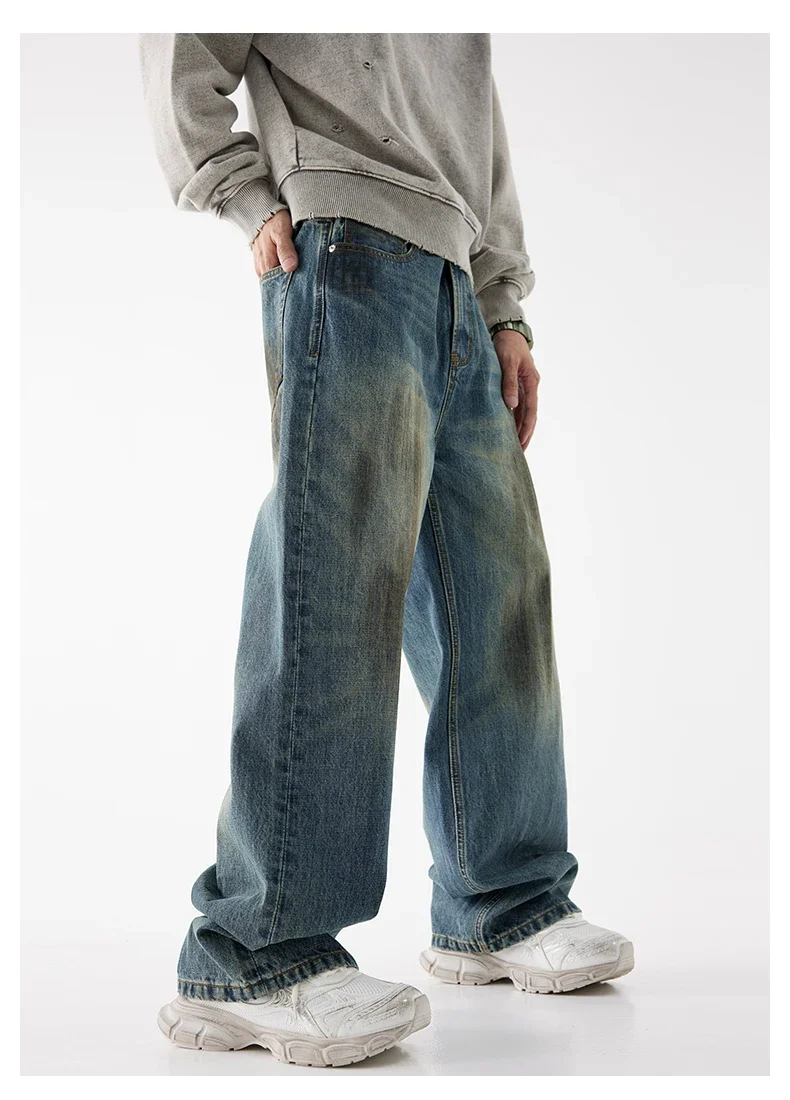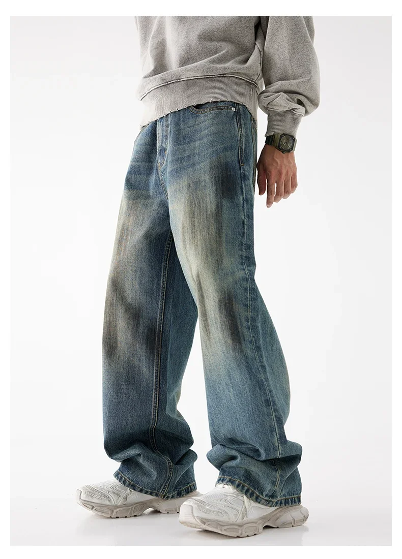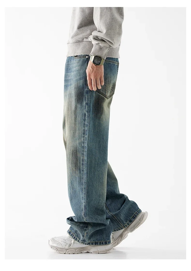93% Cotton Autumn Winter Men’s Baggy Jeans High Street Vintage Fashion Wide Legs Straight Denim Trousers High Quality Male