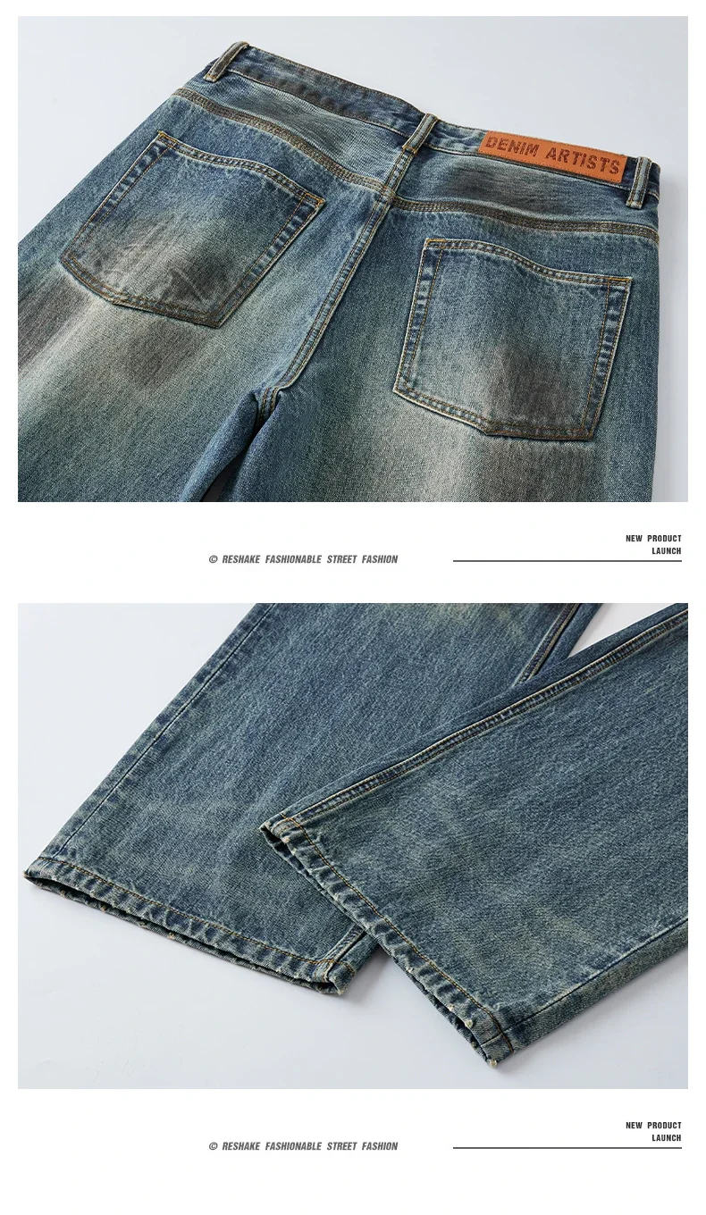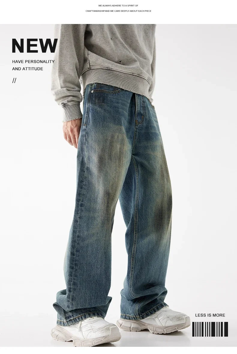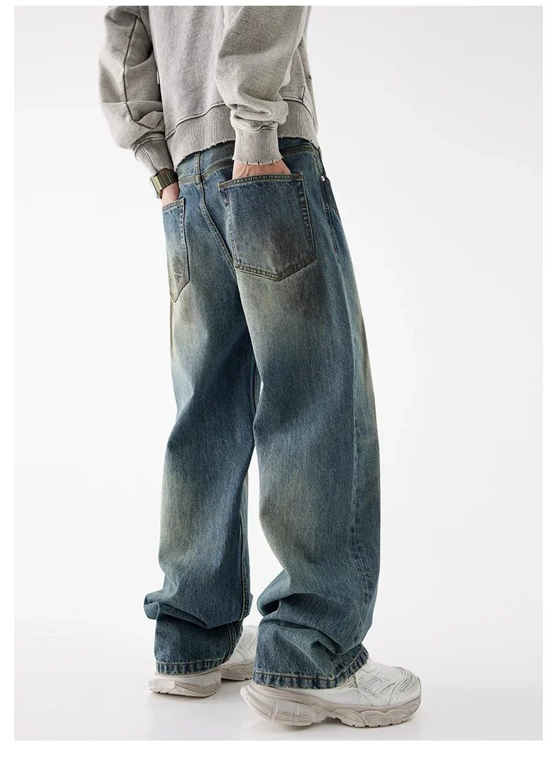 93% Cotton Autumn Winter Men’s Baggy Jeans High Street Vintage Fashion Wide Legs Straight Denim Trousers High Quality Male