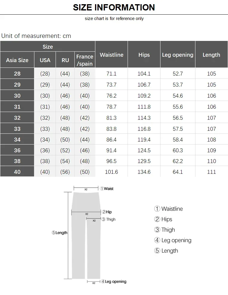 1. The manufacturer is a China size,32 Size ≈ 32 inches Waist Please tell us your height and weight, and we suggest a suitable size for you.