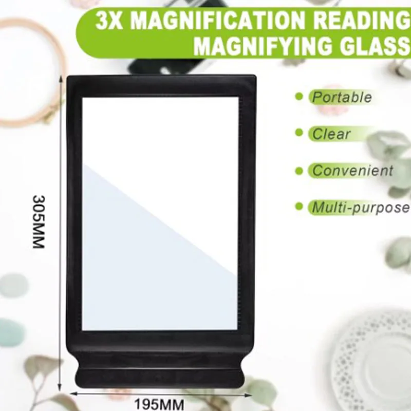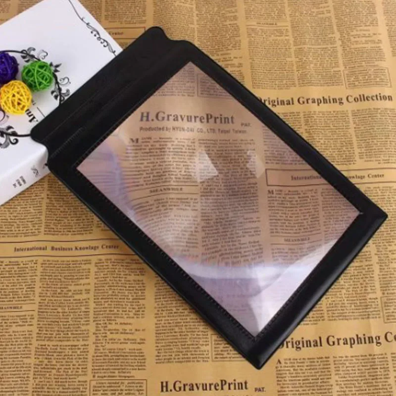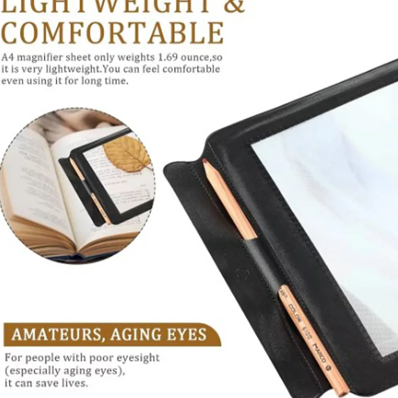 A4 Full Page Size Portable Black Frame Ultra Thin Magnifying Glass Bookmark Magnifying Lens for Reading Books