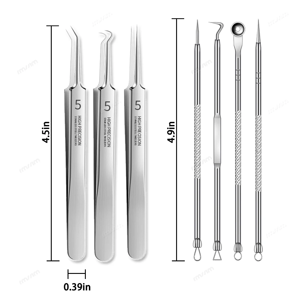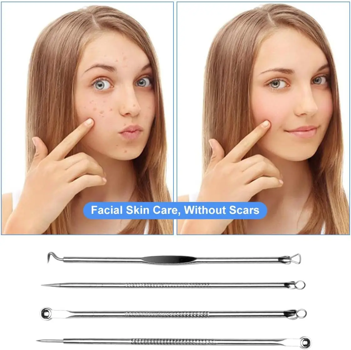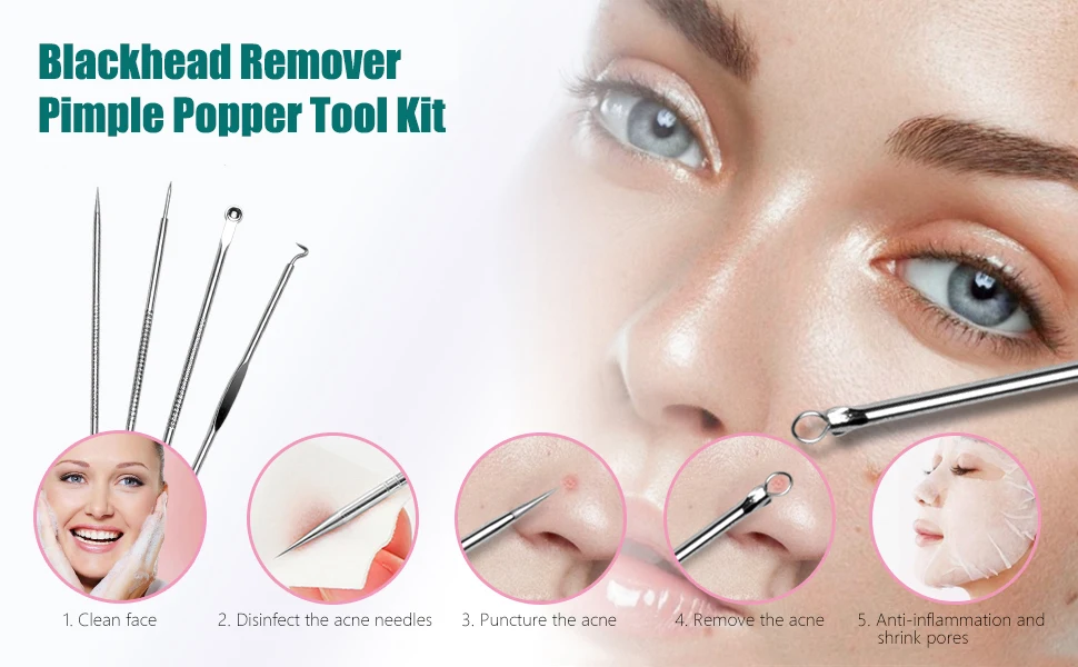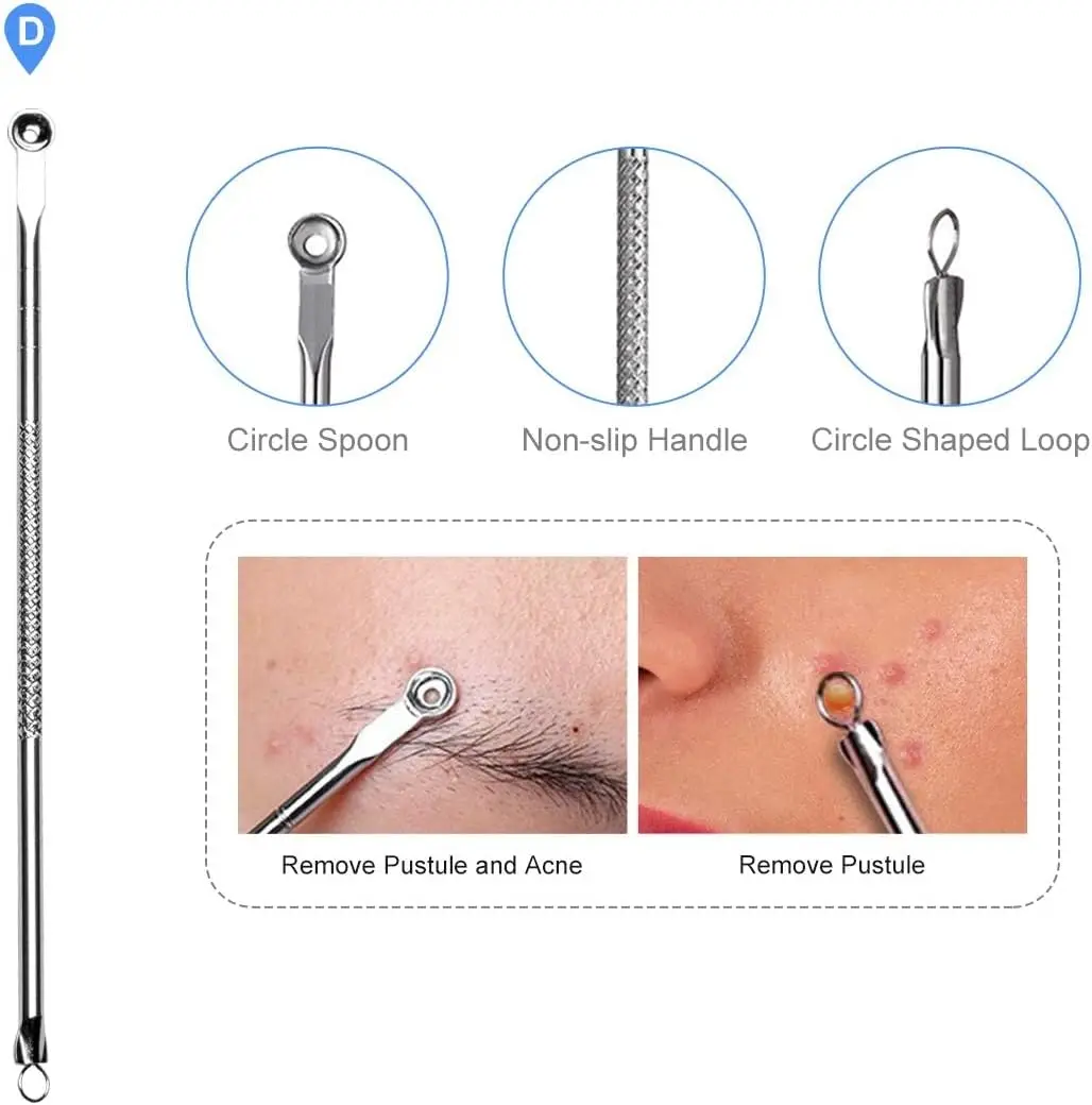 4. High-quality materials. The blackhead extractor are made of high quality stainless steel, our acne blemish extraction tool is safe and reliable, blemish blackhead removal tool is suitable for all skin types, professional whitehead acne blemish extraction kit.