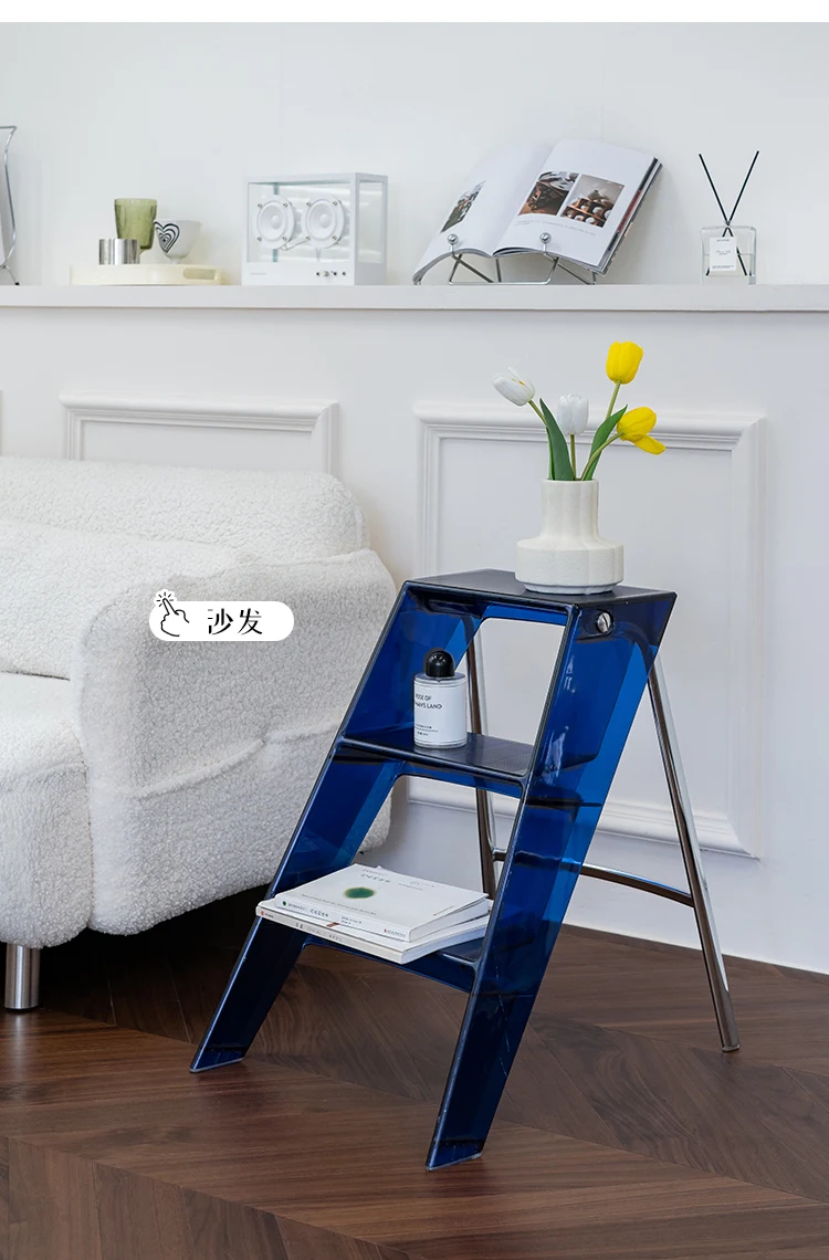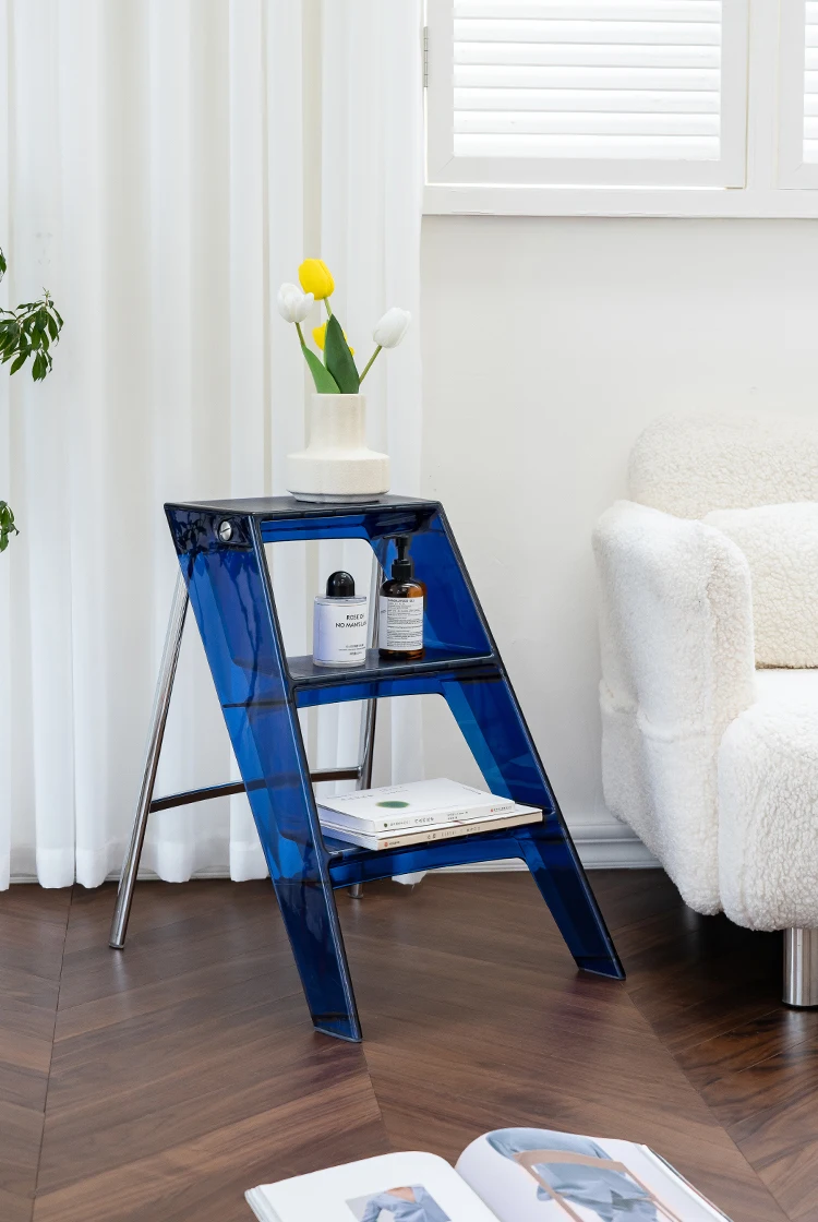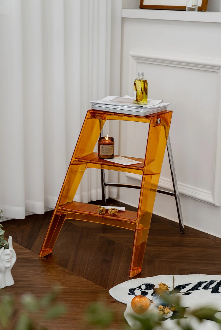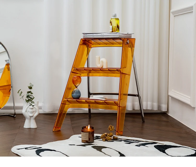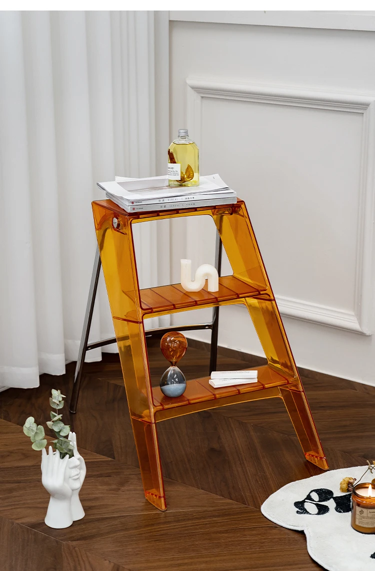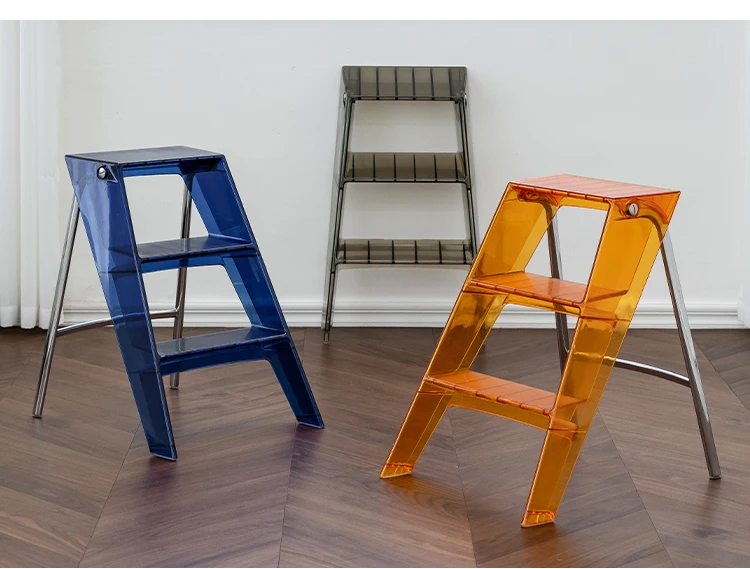 Acrylic Transparent Household Stepladder Folding Indoor Thickened Herringbone Storage Three-Step Ladder New for 2023