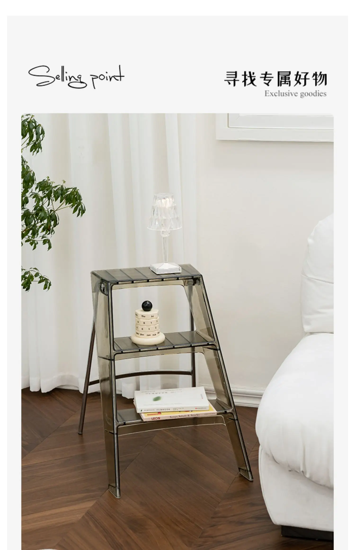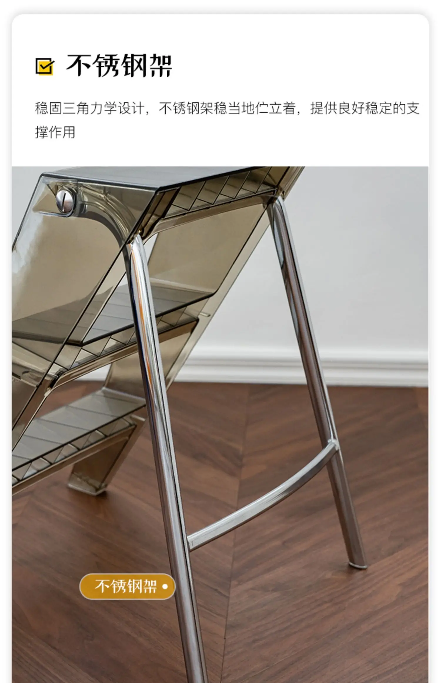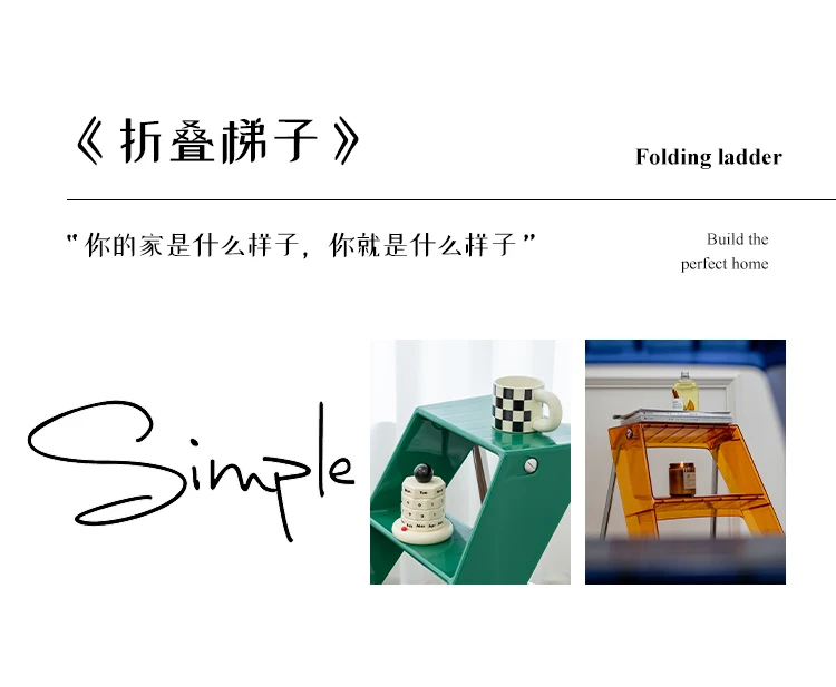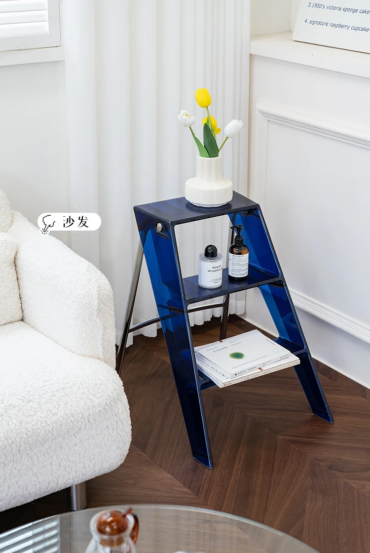 Acrylic Transparent Household Stepladder Folding Indoor Thickened Herringbone Storage Three-Step Ladder New for 2023