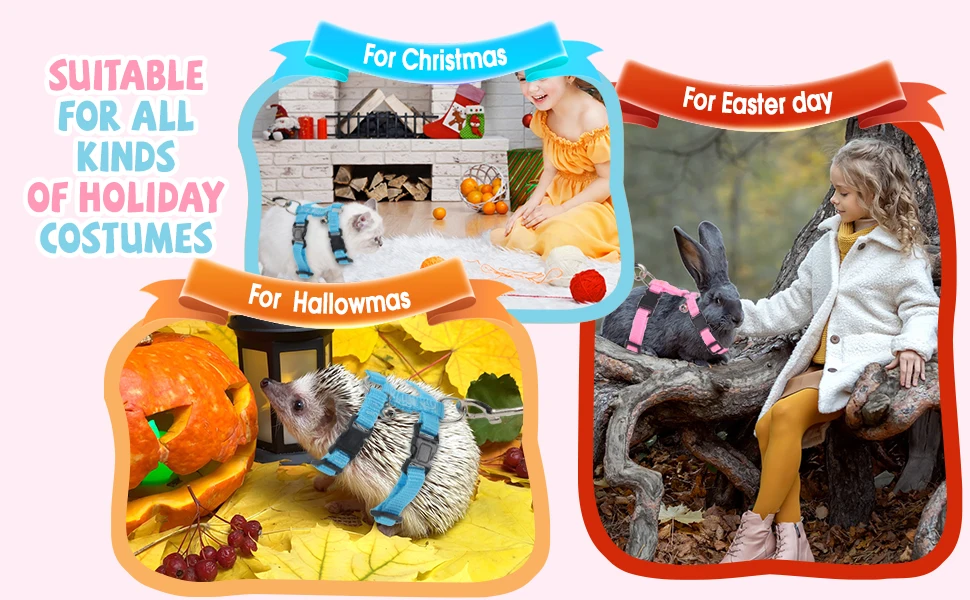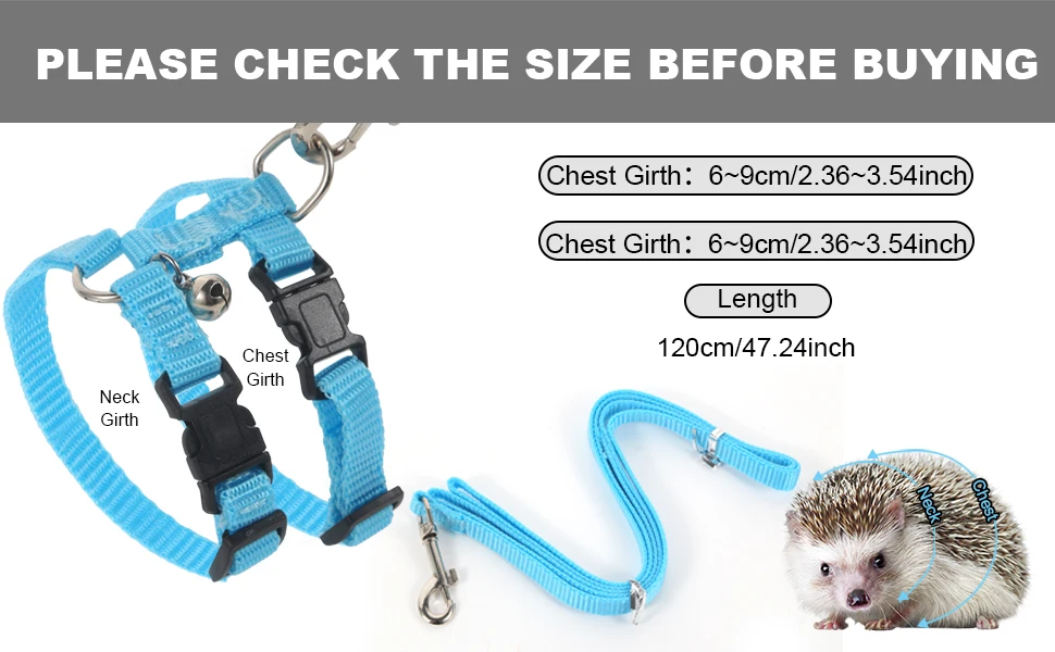 Adjustable Hedgehog Harness for Training Playing Traction Rope Small Animal Pet Outdoor Play (Blue,Pink)