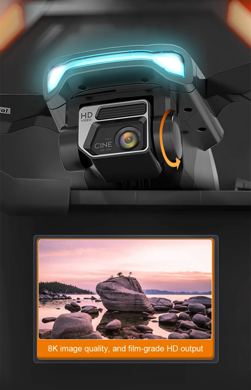 5G Brushless GPS Folding Drone with Obstacle Avoidance Dual wifi Professional Aerial Camera: front lens placed wide-angle 8K HD WIFI, bottom HD 1080P with optical flow can be switched to take pictures of the angle, accurate positioning, ultra-long range 7.4V large battery, low power/out of control/over distance can return to the flight, intelligent following, flying around the point, double folding, APP cell phone control, customized routes, a key to return to the flight, rising and falling Forward and backward, left and right side flight, headless mode, automatic switching optical flow/GPS, LCD display (remote control can be recharged)
