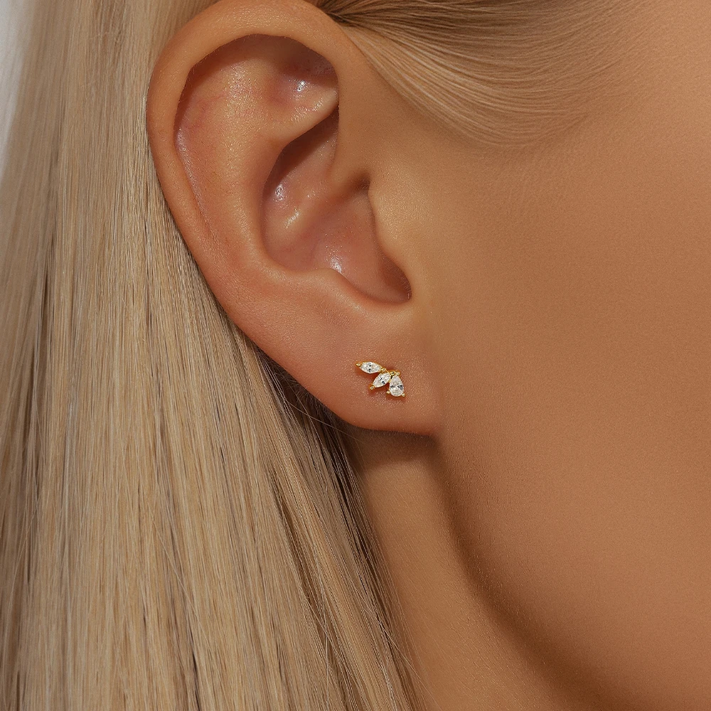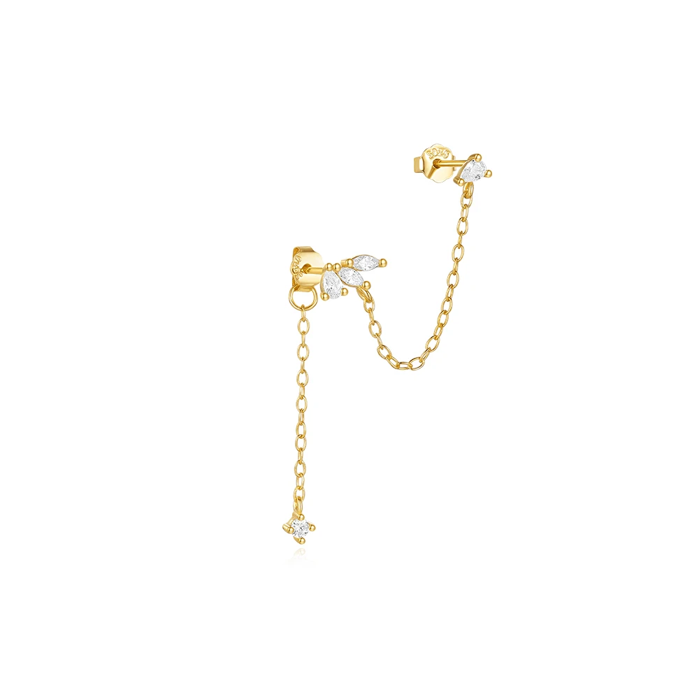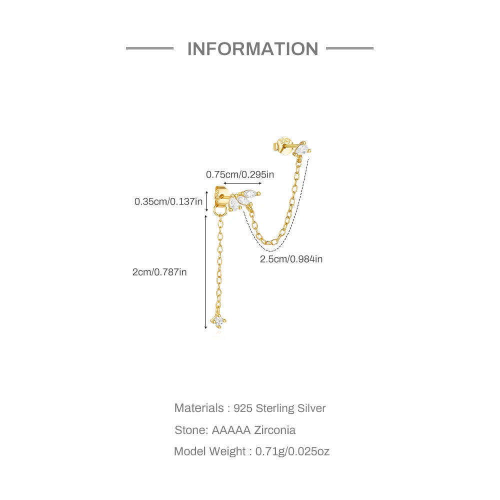 Aide 925 Sterling Silver Delicate Compact Zircon Earrings For Women Chain Stud Earrings Female Plata Silver Jewelry Pendientes
