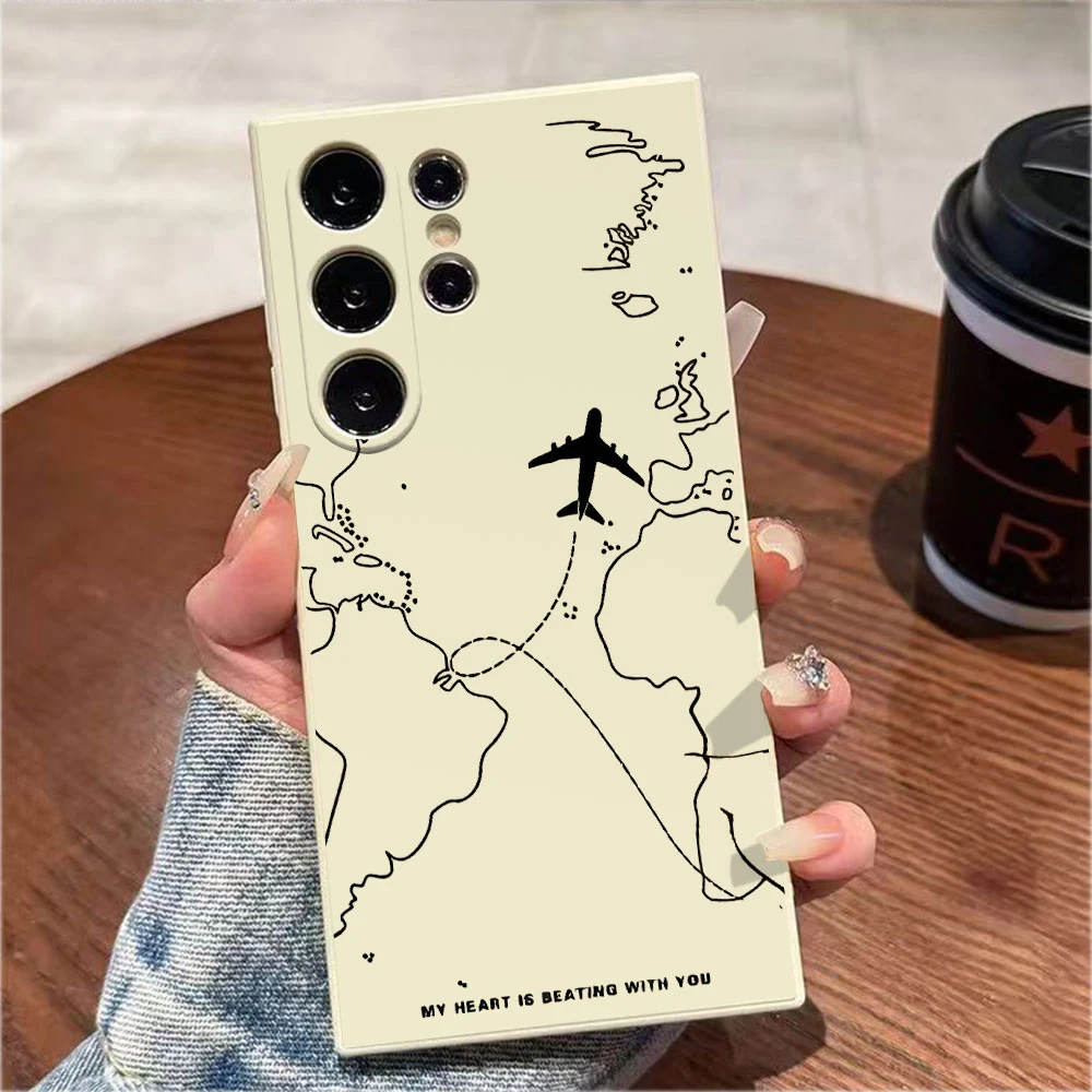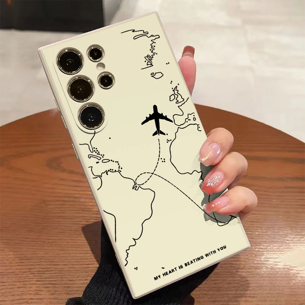 Airplane Route Desian Phone Case For Samsung Galaxy S25 S24 S23 S22 S21 S20 S10 Note 20 10 Lite Ultra Plus FE 4G 5G Cover