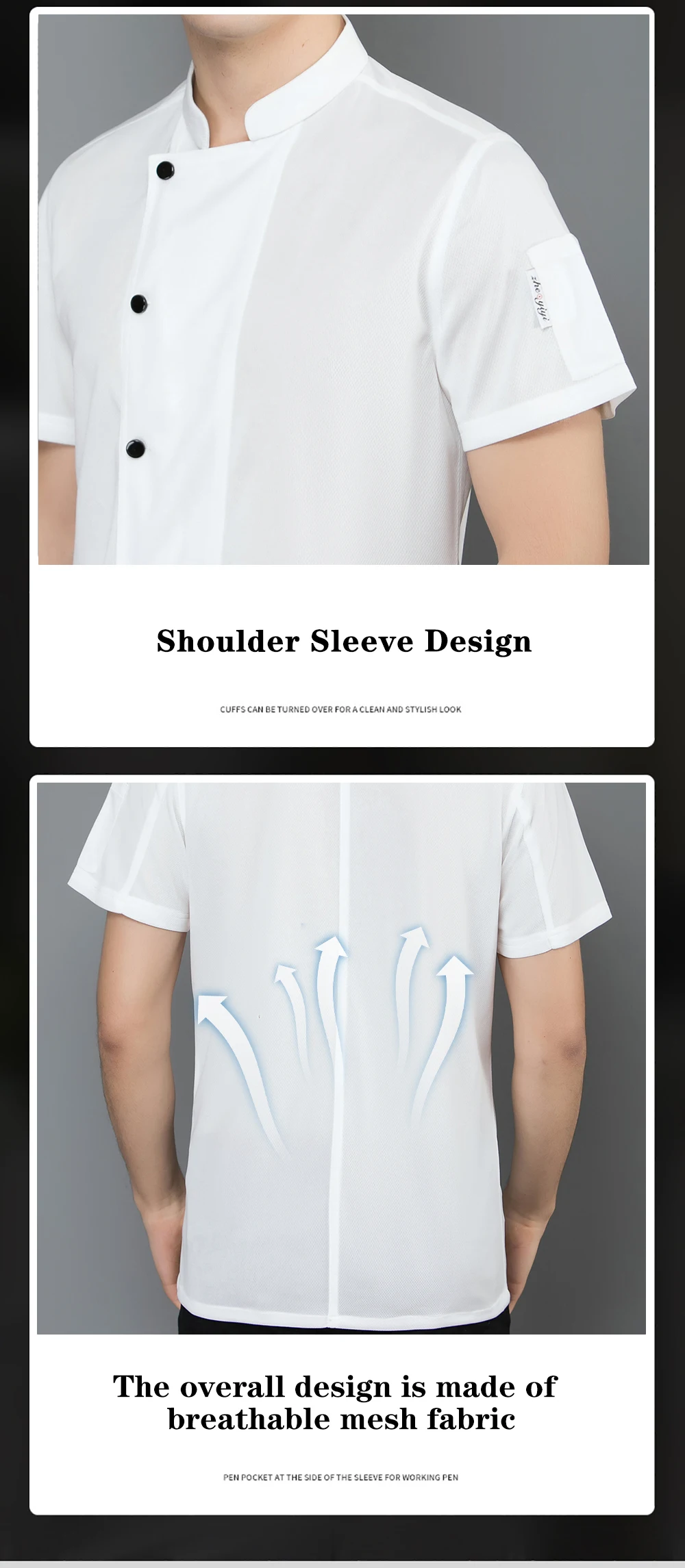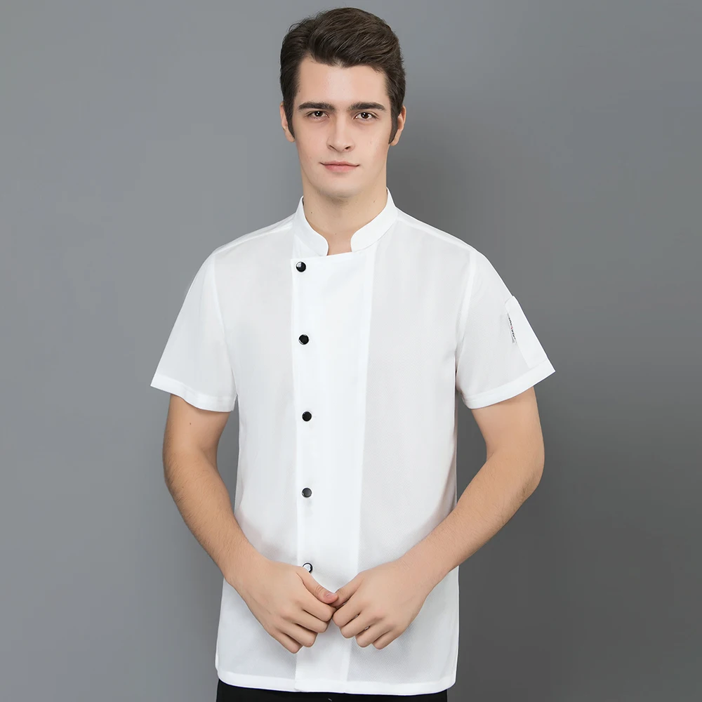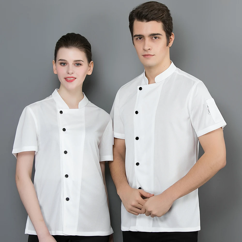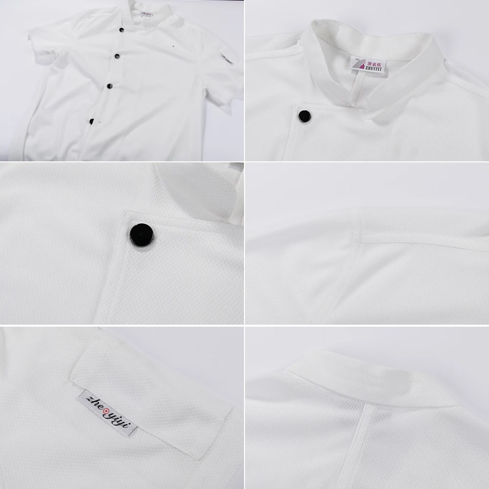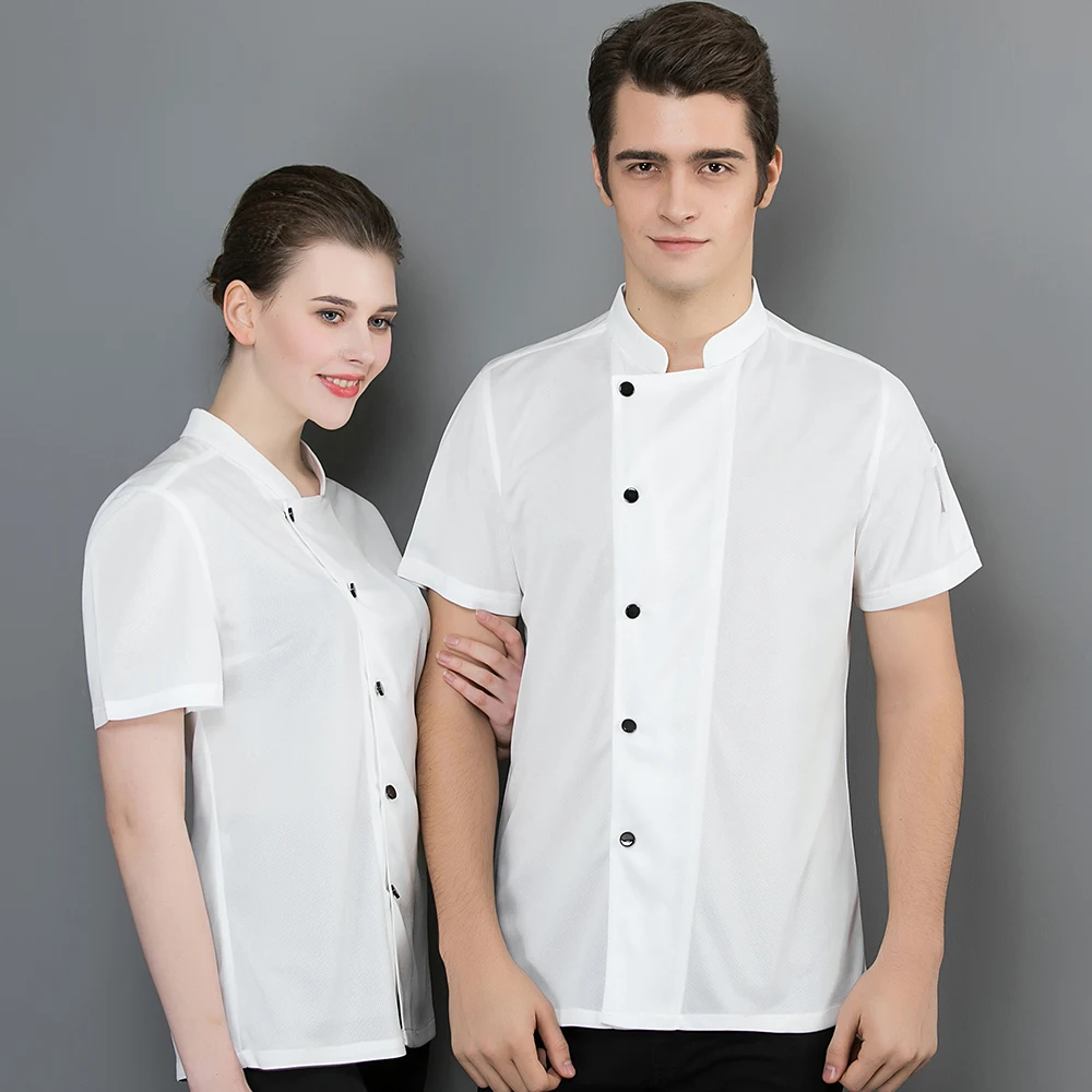 All Mesh Uniforms Short Sleeve Clothes Hotel Restaurant Waiter Shirts Kitchen Chef Coat Overalls Men Women