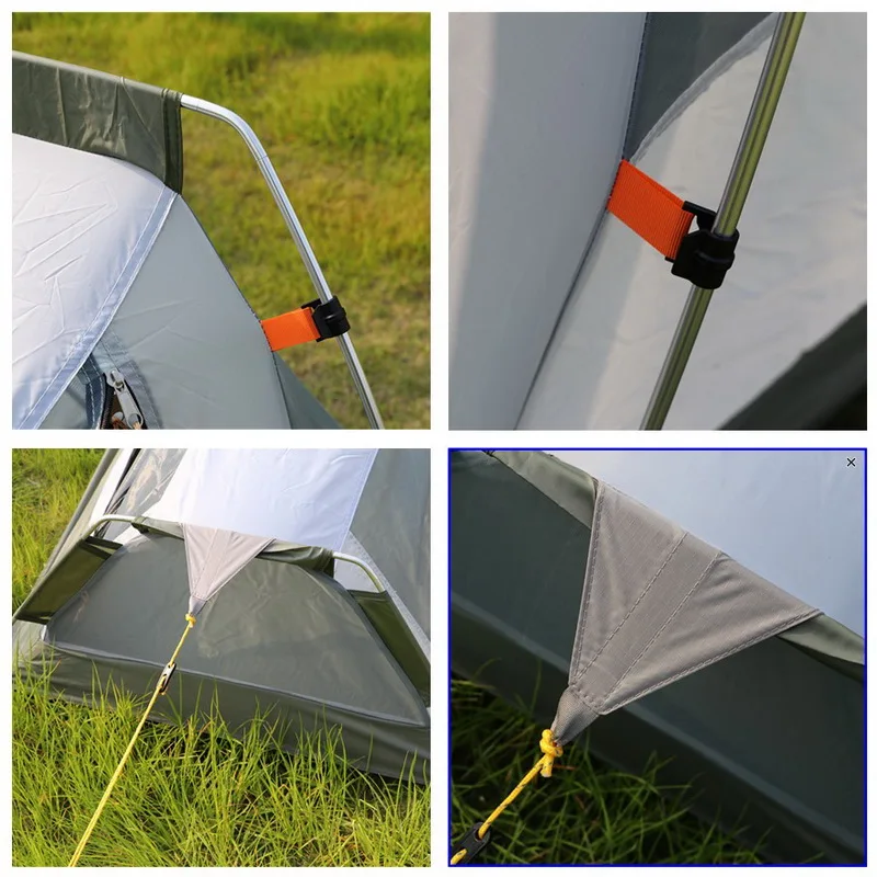 Accessories: 2 reflective wind ropes, 8 aluminum tins, complete set