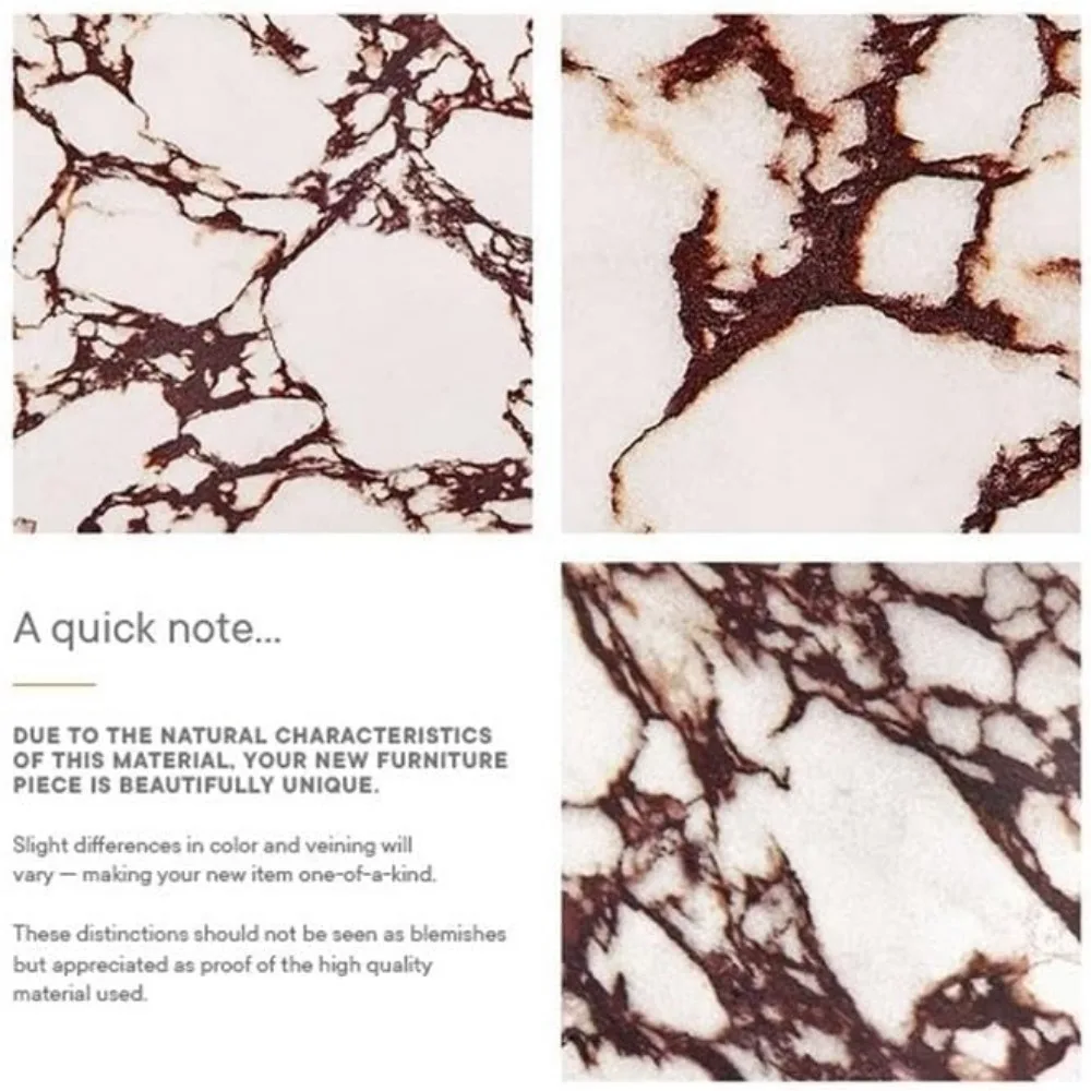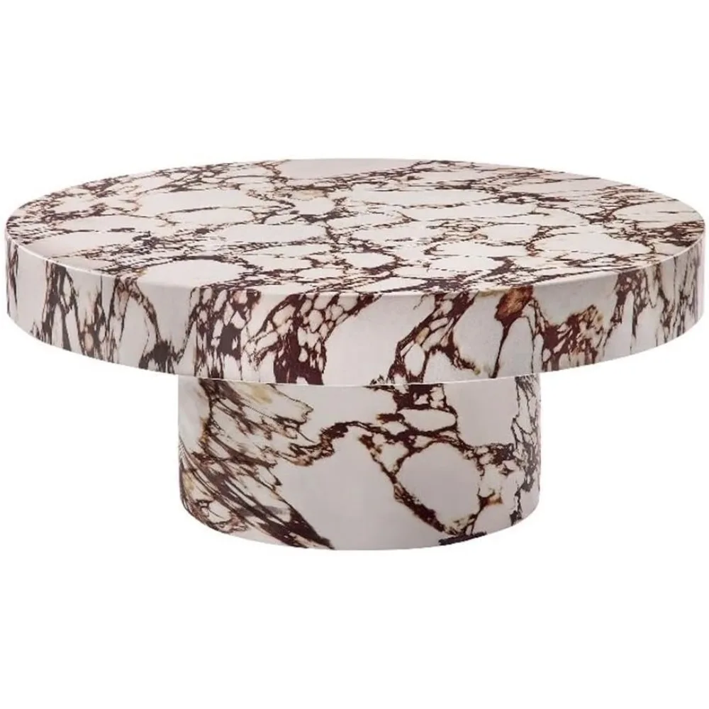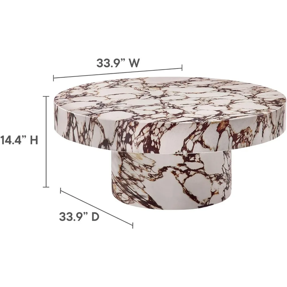 Alora Round Concrete Coffee Table with Faux Stone Finish in Red Marble – Cement Accent Table for Living Room – Stone Pati