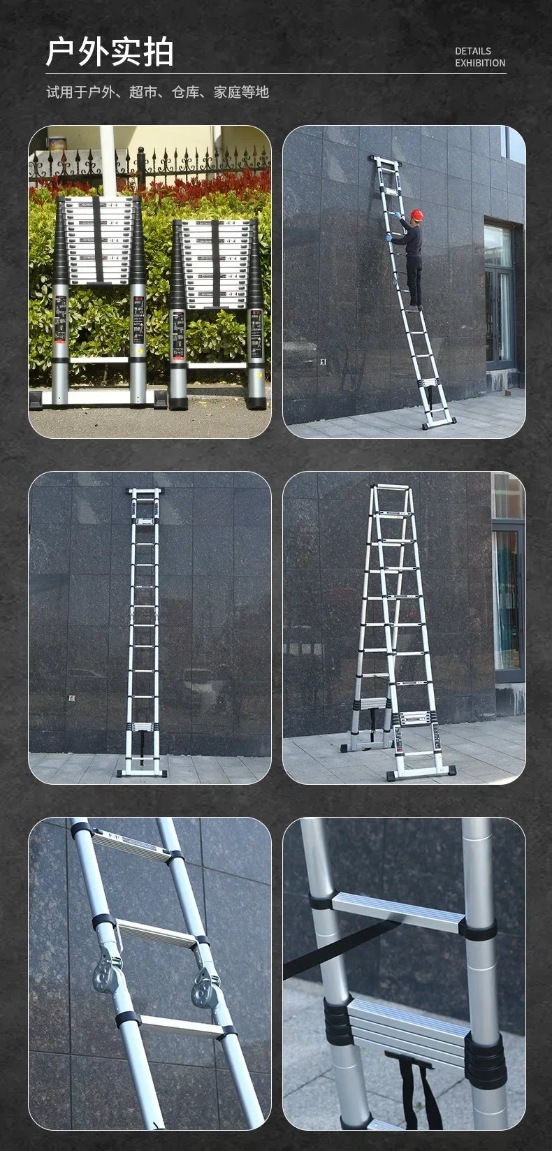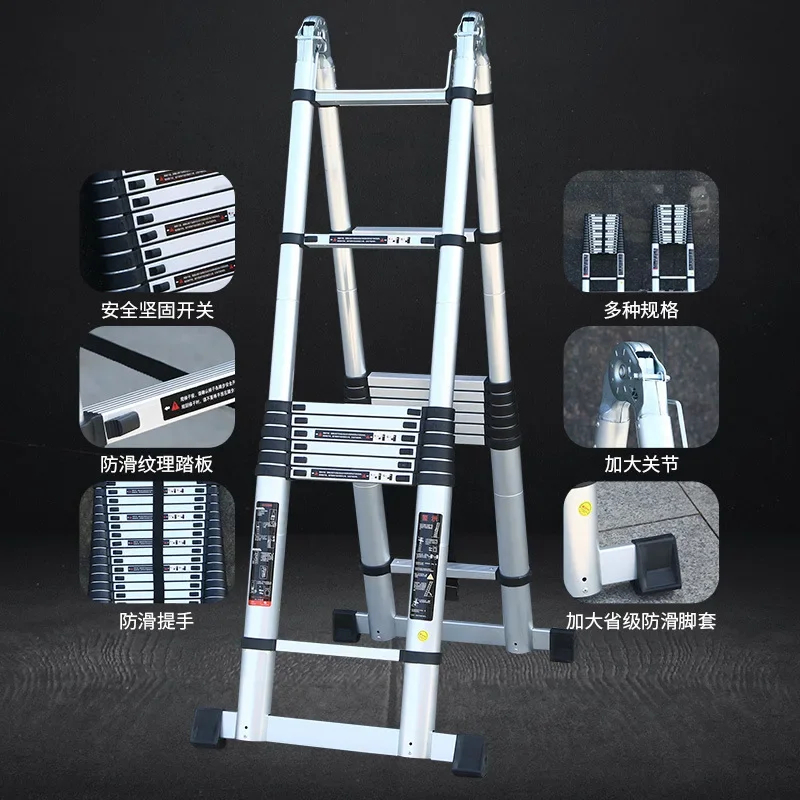 Aluminium Alloy Telescopic Step Ladder Multi-functional Lifting Engineering Stairs Thickened Herringbone Ladders Folding Stairs