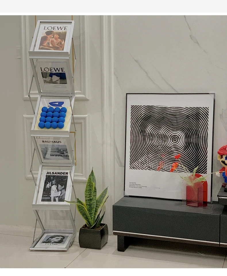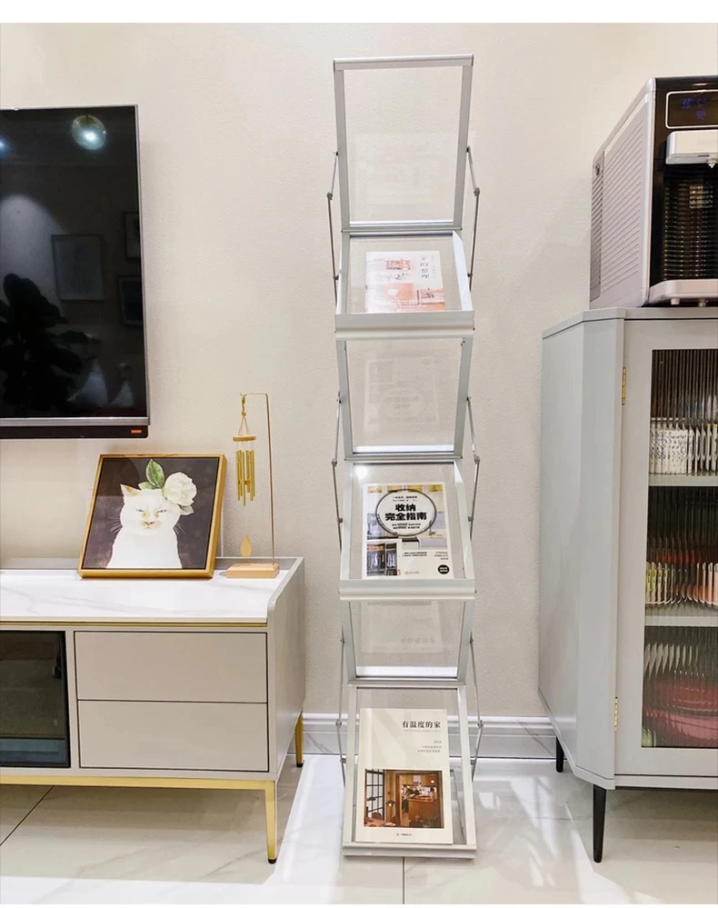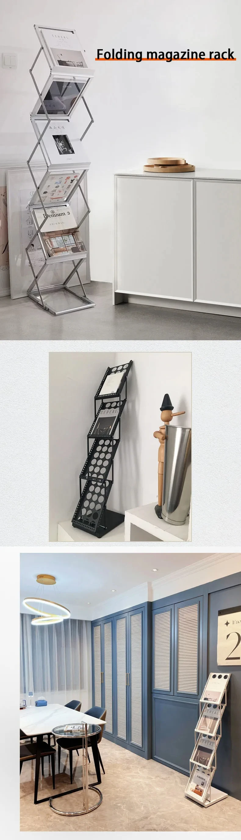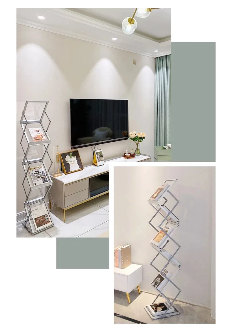 Aluminum Alloy Folding Magazine Rack Acrylic Exhibition Bookshelf Newspaper Storage Cabinet Office Modern Bookcase Easy Assembly