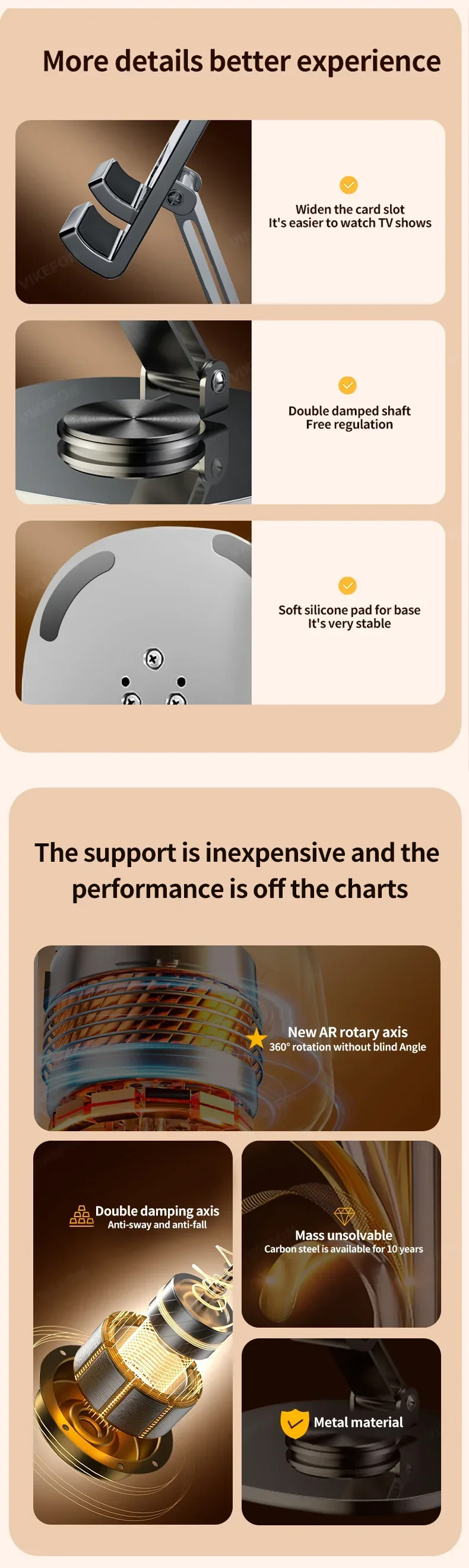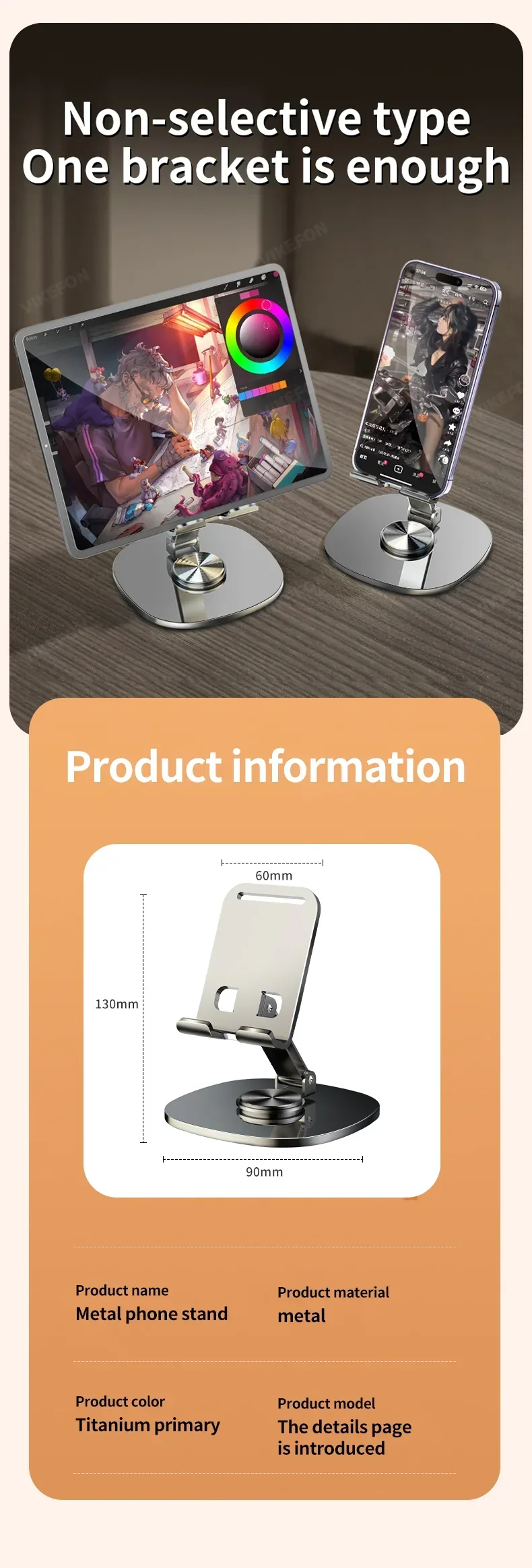 2,Exquisite Workmanship: Our adjustable phone stand for the desk is made of sturdy aluminum alloy, which has a smo-oth ed-ge, a cool metal phone stand, and a design with a low gravity center.