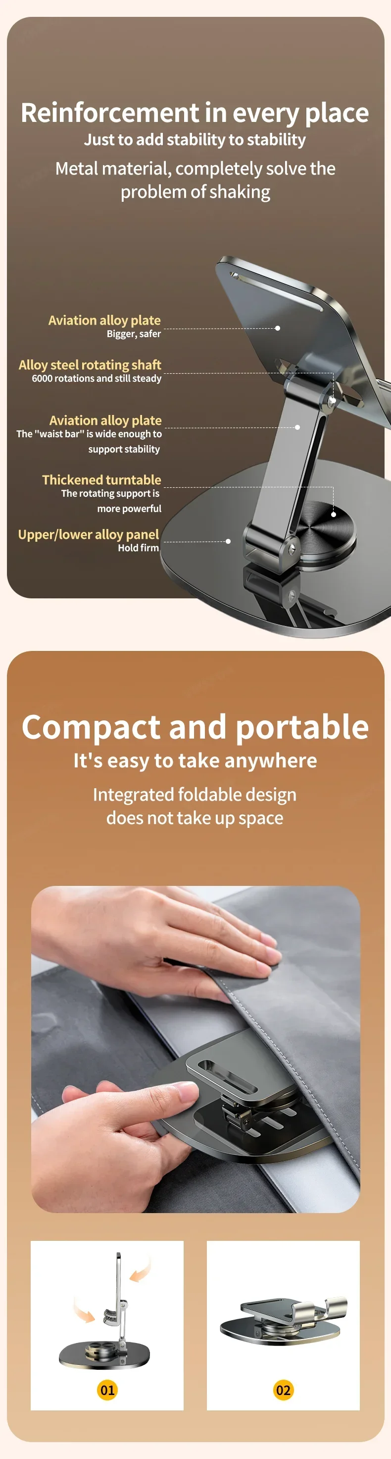 Upgraded to All Aluminum Alloy+720°Rotating+Foldable.