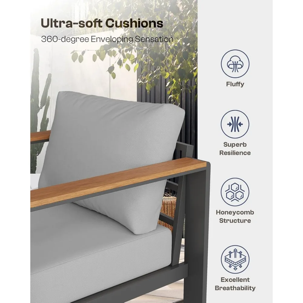 - 【Premium Materials】 The patio furniture set features a superior aluminum frame with a powder-coated finish for enhanced durability and stability, and water-resistant olefin cushions for easy maintenance and long-lasting outdoor use.
