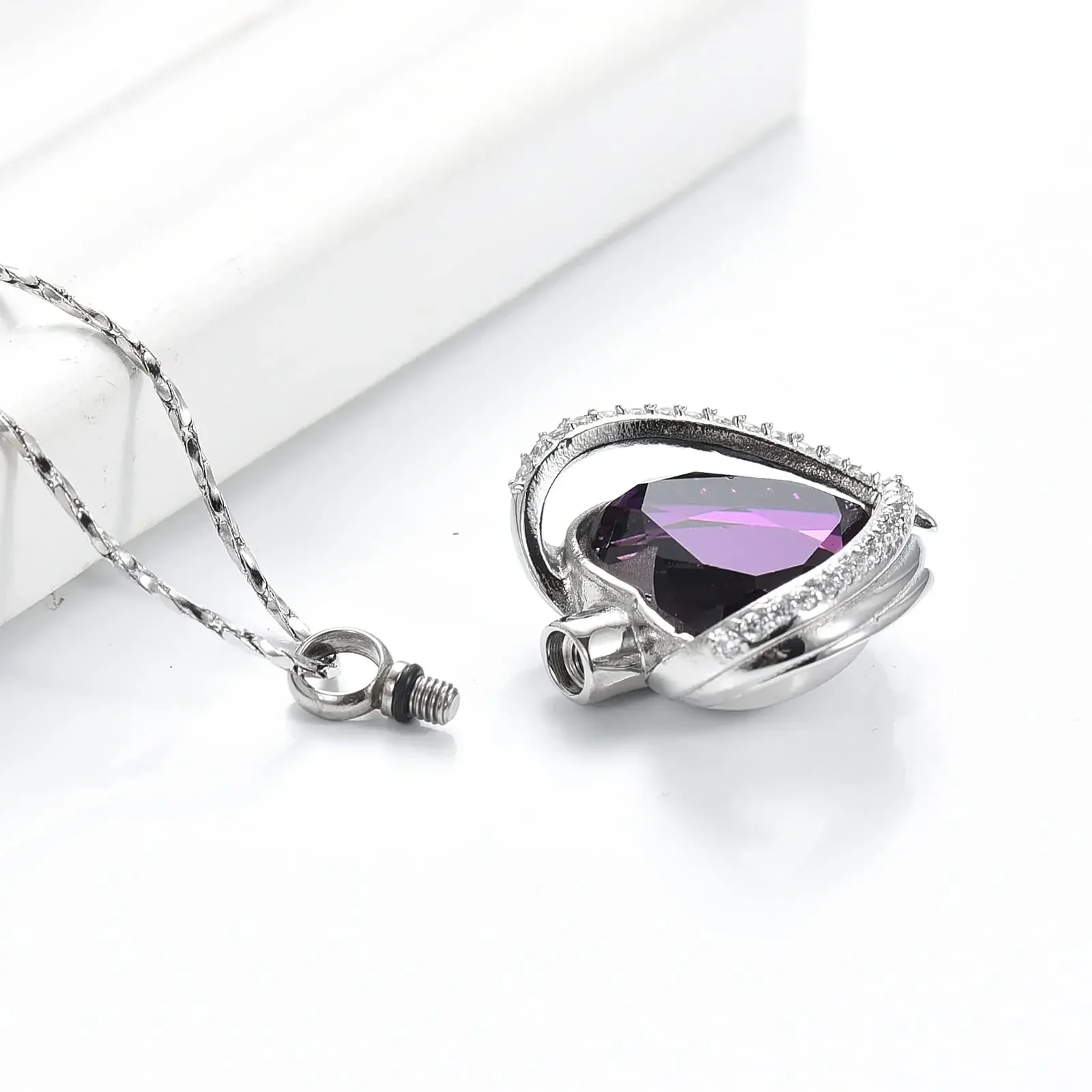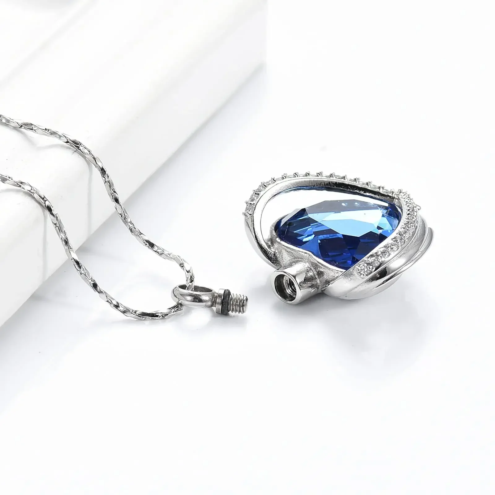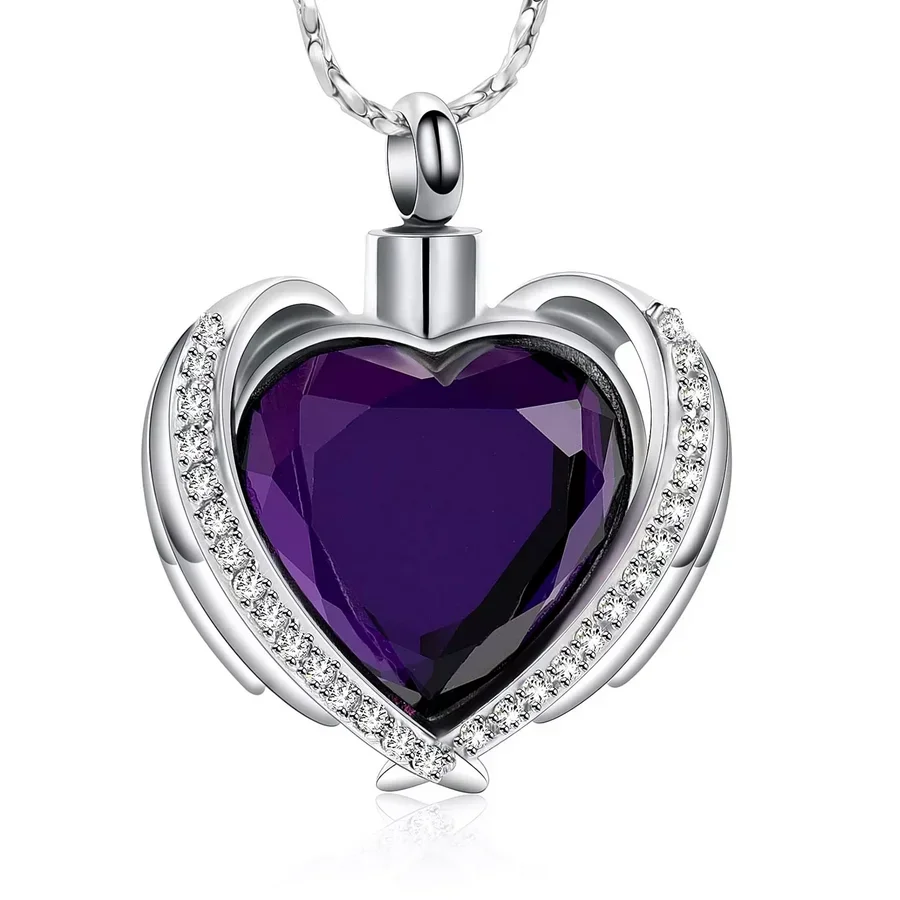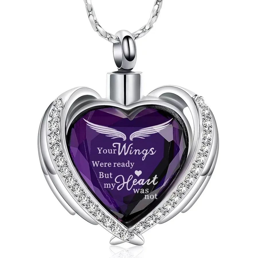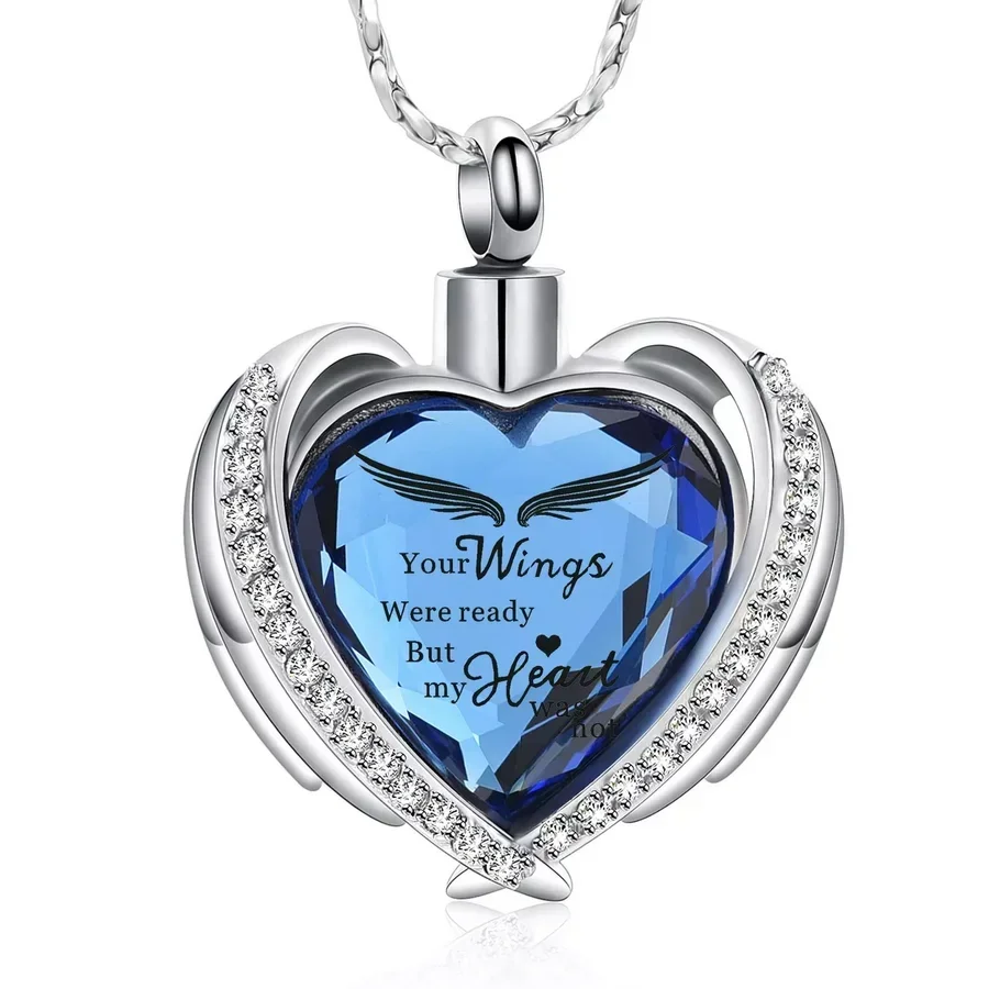 Always In My Mind Angel Wing Hug Crystal Heart Shape Necklace Cremation Pendant Memorial Ash Holder Urn Funeral Keepsake Jewelry