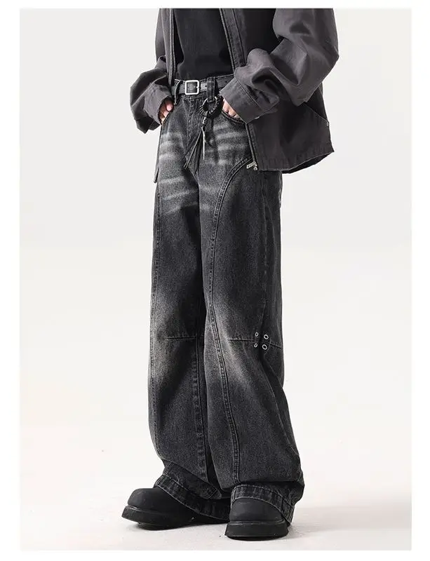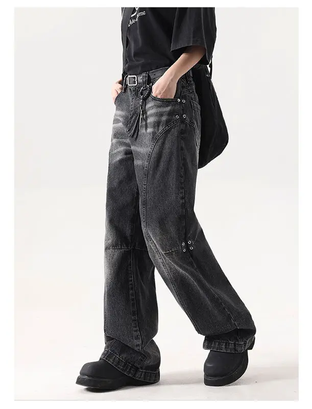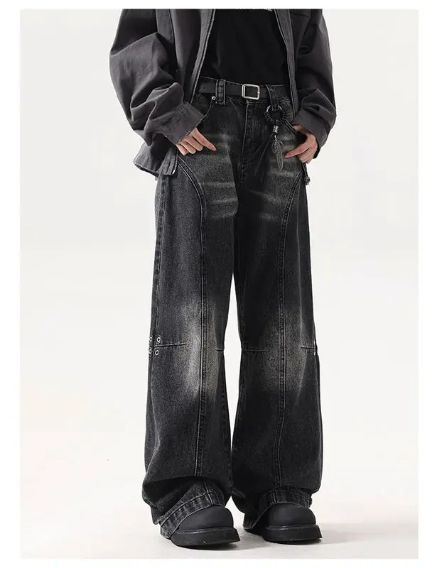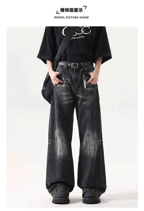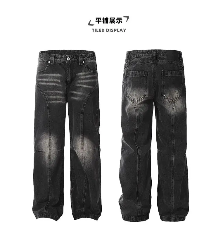 American high street trendy washed straight leg jeans for men and women hip-hop personality loose and wide leg casual pants y2k