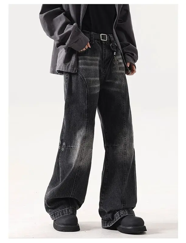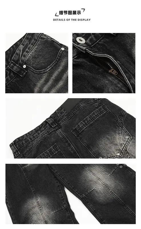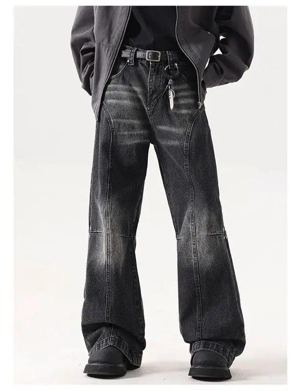 2025 Ropa Y2K Streetwear Washed Black Baggy Stacked Flare Jeans Pants For Men 90S Vintage Clothes Denim Trousers Pantalon Homme