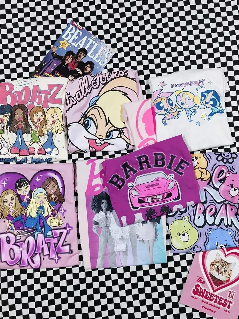 American Retro Harajuku Print Y2k Hottie Oversize Loose Plus Size Short-sleeved T-shirt Top