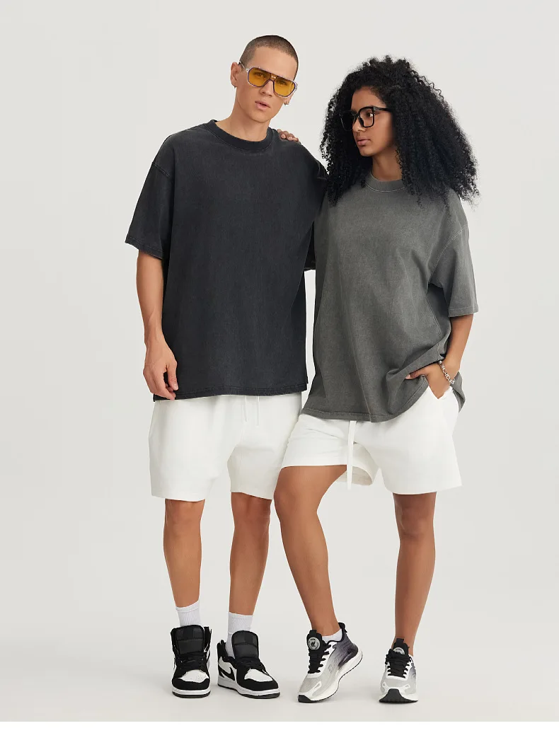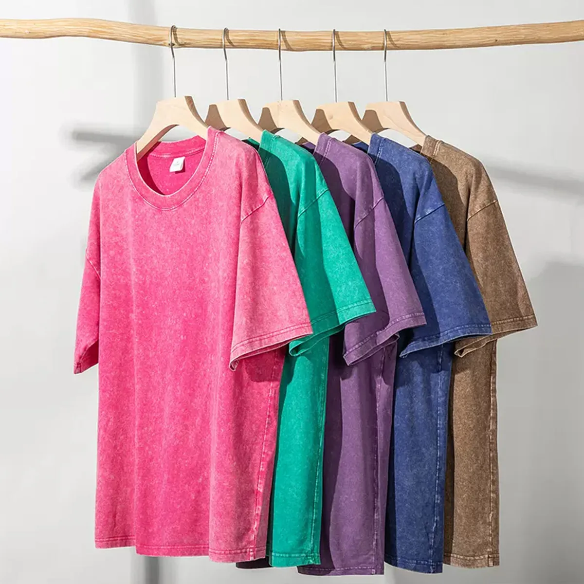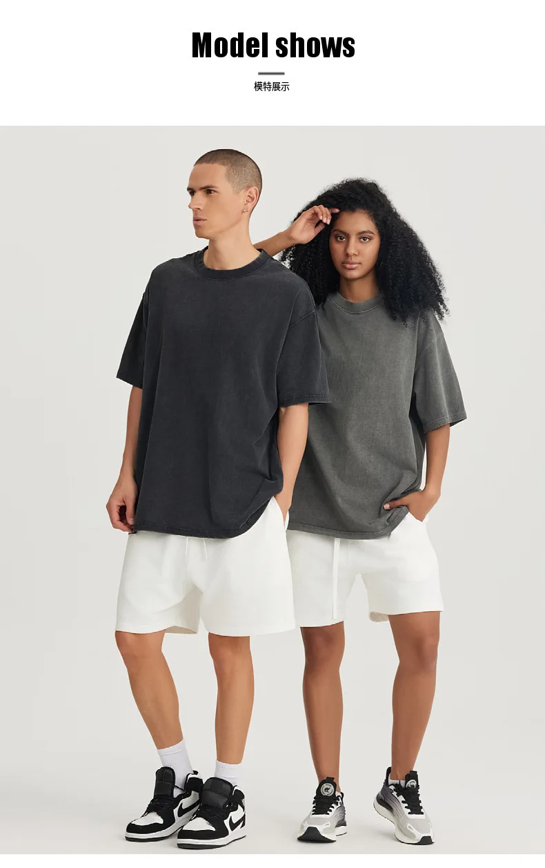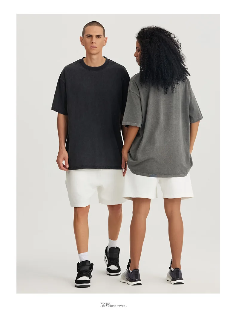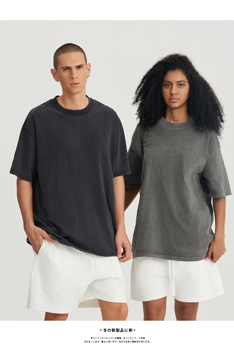 American Style Retro Heavyweight Solid Color Short Sleeved T-shirt Men Women Summer Street Trendy Washed Old Oversized Clothes