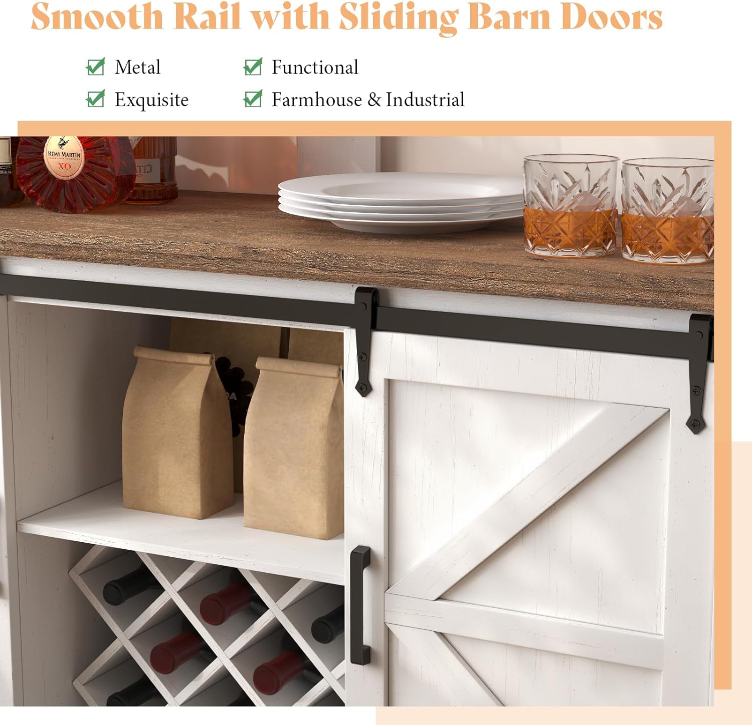 Ample Storage: This Cabinet Has 2-Tier Tabletops, Glass Holder, Wine Racks, And Side Cabinets For Coffee Makers, Glasses, Wine, And More. Adjustable Shelves Can Be Set To 3 Heights Or Removed For Extra Space.