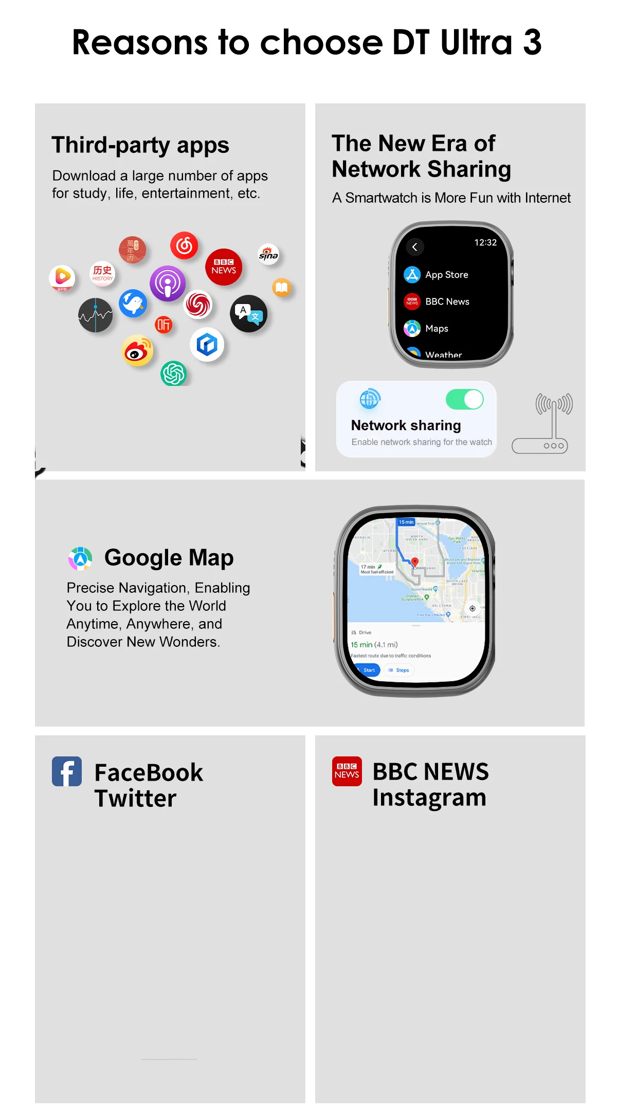Amoled DT Ultra 3 Smart Watch 4GB ROM Third Party APPS ChatGPT Video Playback Compass NFC BT Call SmartWatch Men Women