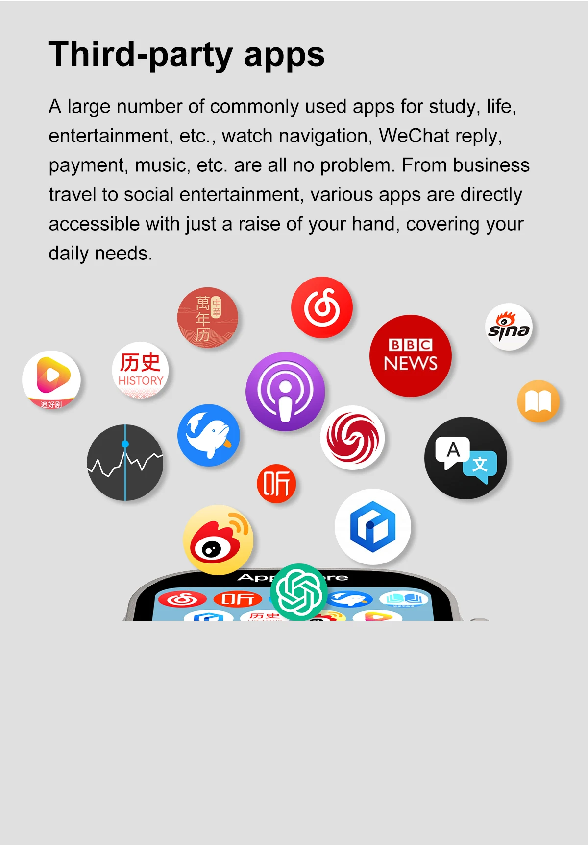 Note:1. the watch support installing the apps which come with the watch,