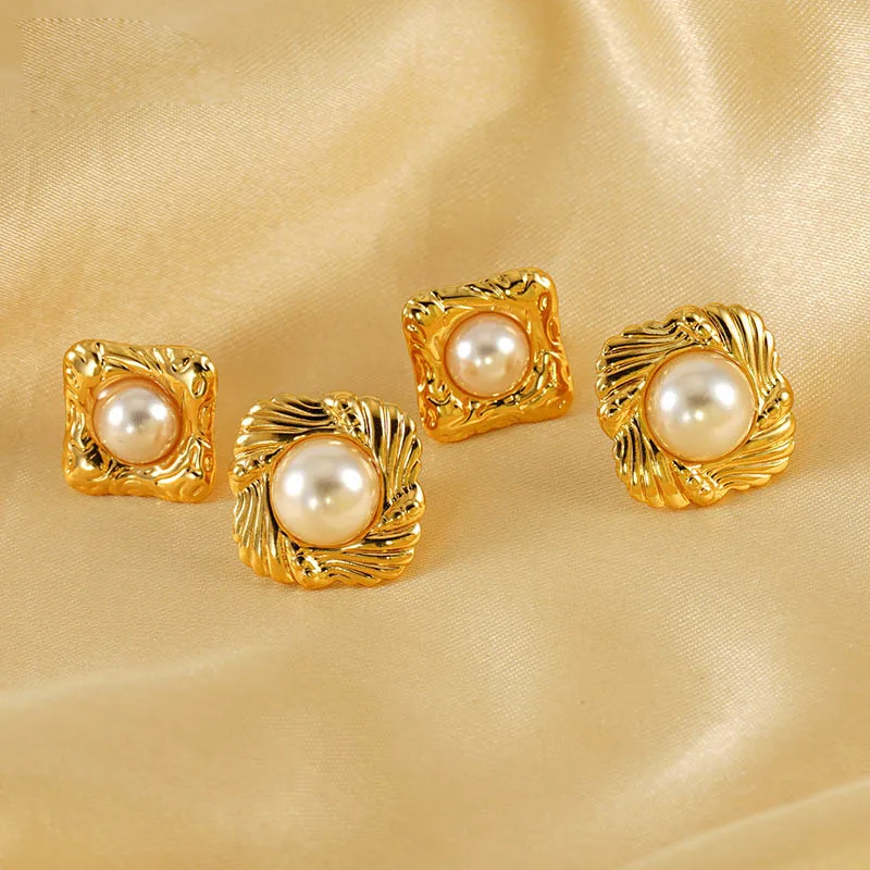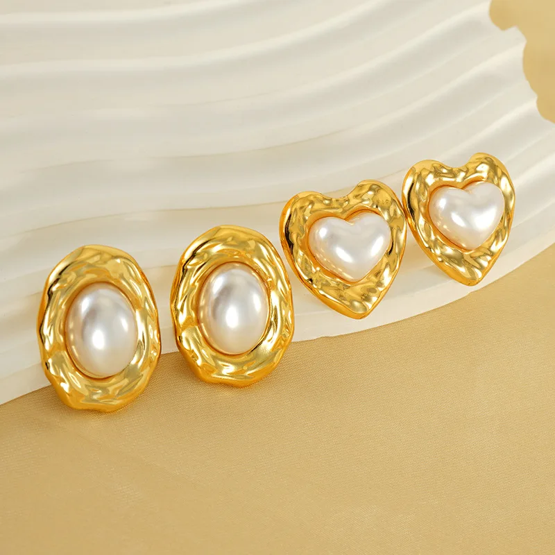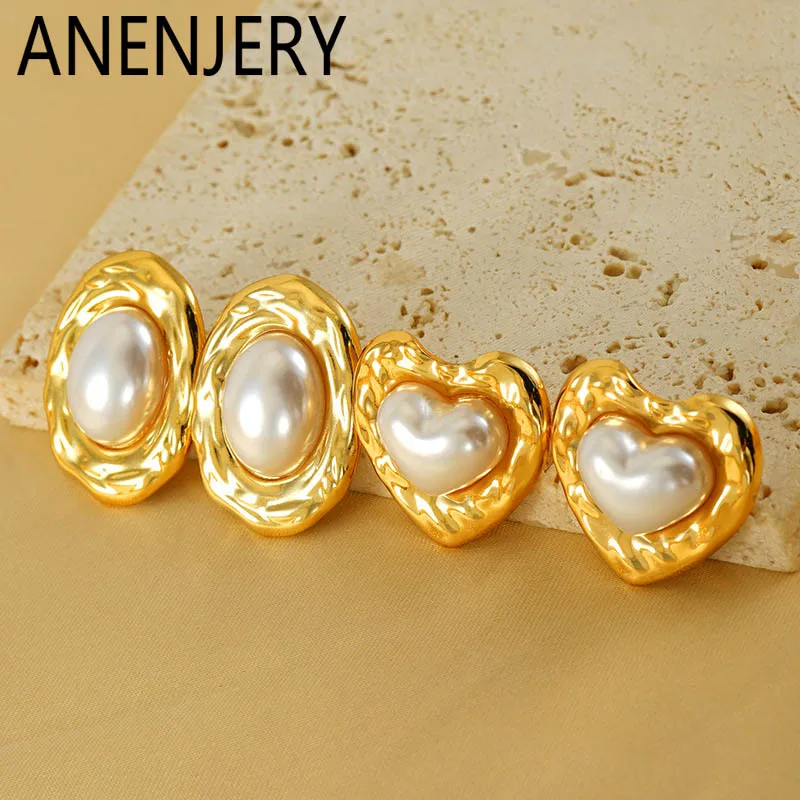 ANENJERY 316L Stainless Steel Love Heart Imitation Pearl Earrings For Women Vintage Temperament Jewelry Gifts